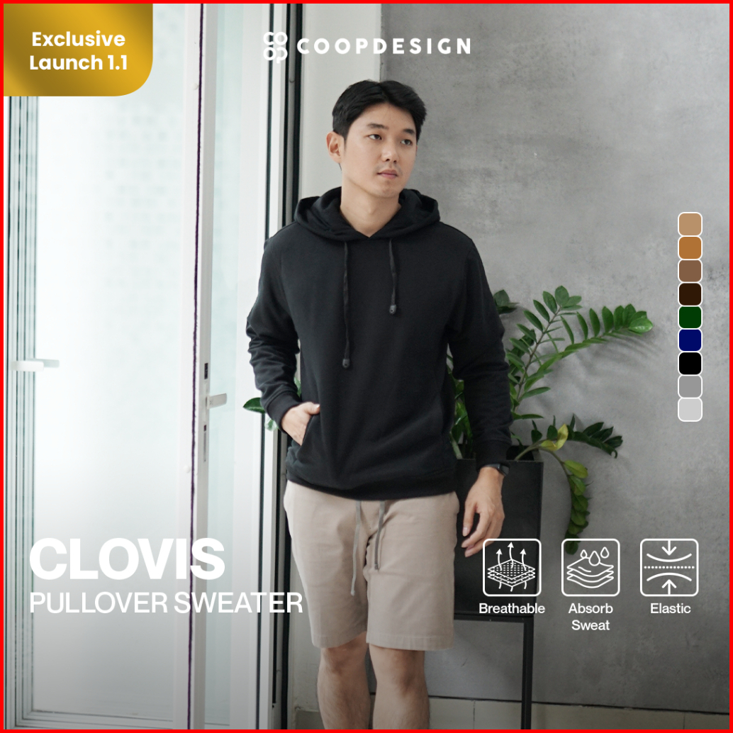 Coop Design - Clovis Pullover Sweater Hoodie Fleece Saku Samping Distro Unisex Pria Wanita