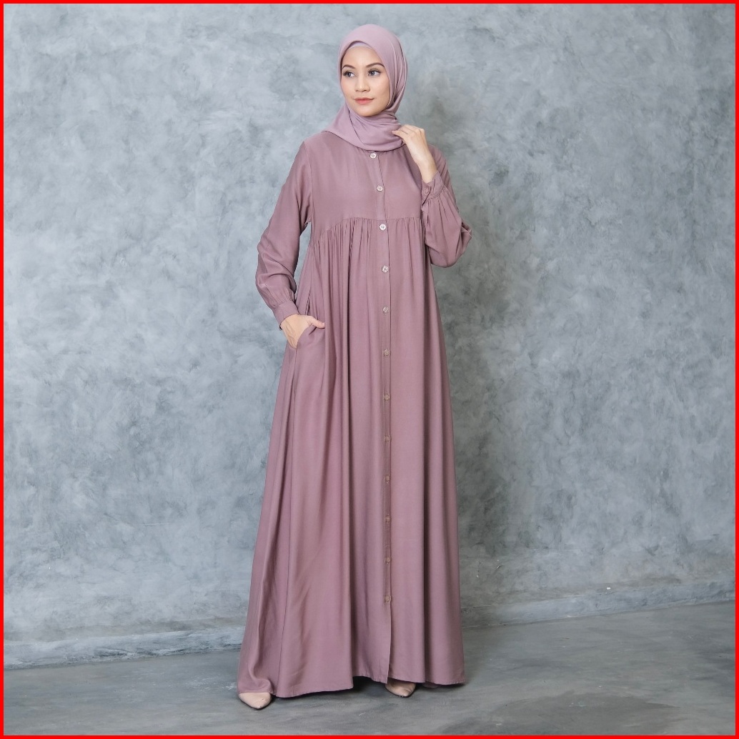 Gamis Full Kancing Rayon Twill Gamis Polos Premium Muslim Wanita Gamis Lengan Kancing