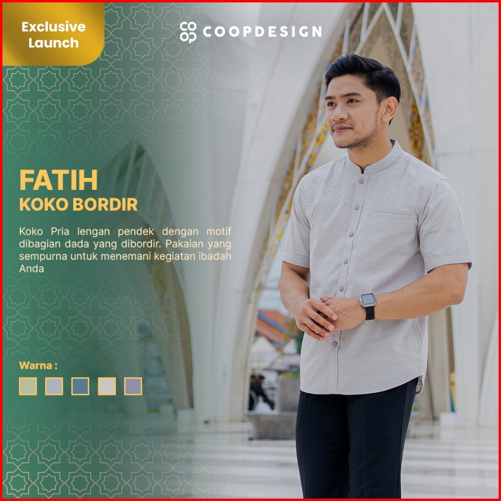 Coop Design - Fatih Koko Bordir Kerah Changi Collarless Katun Lengan Pendek Pria