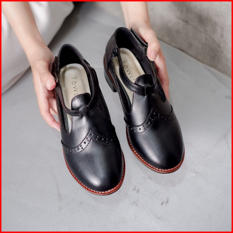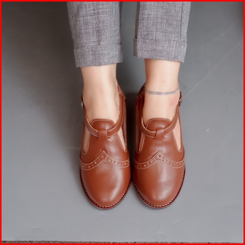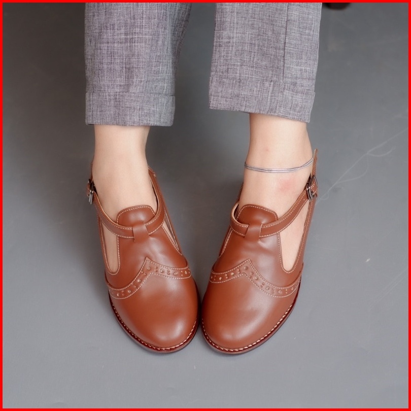 Yovvli Jolie Sepatu Wanita Vintage Flat Shoes Kulit Hak 3 Cm