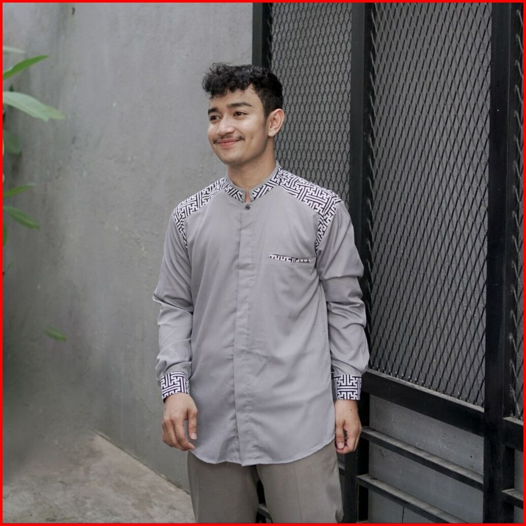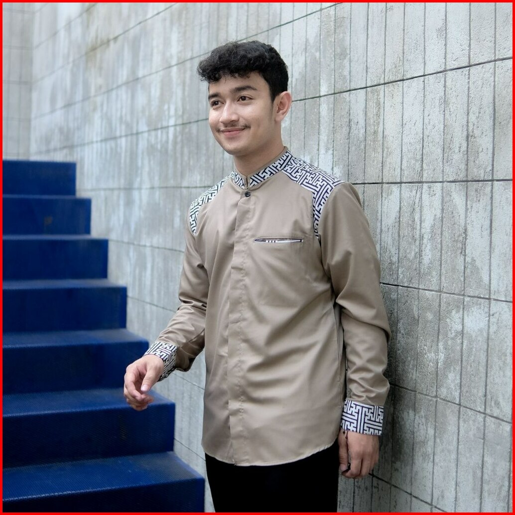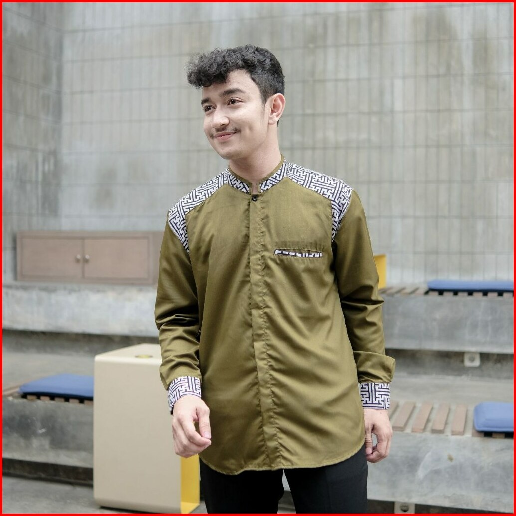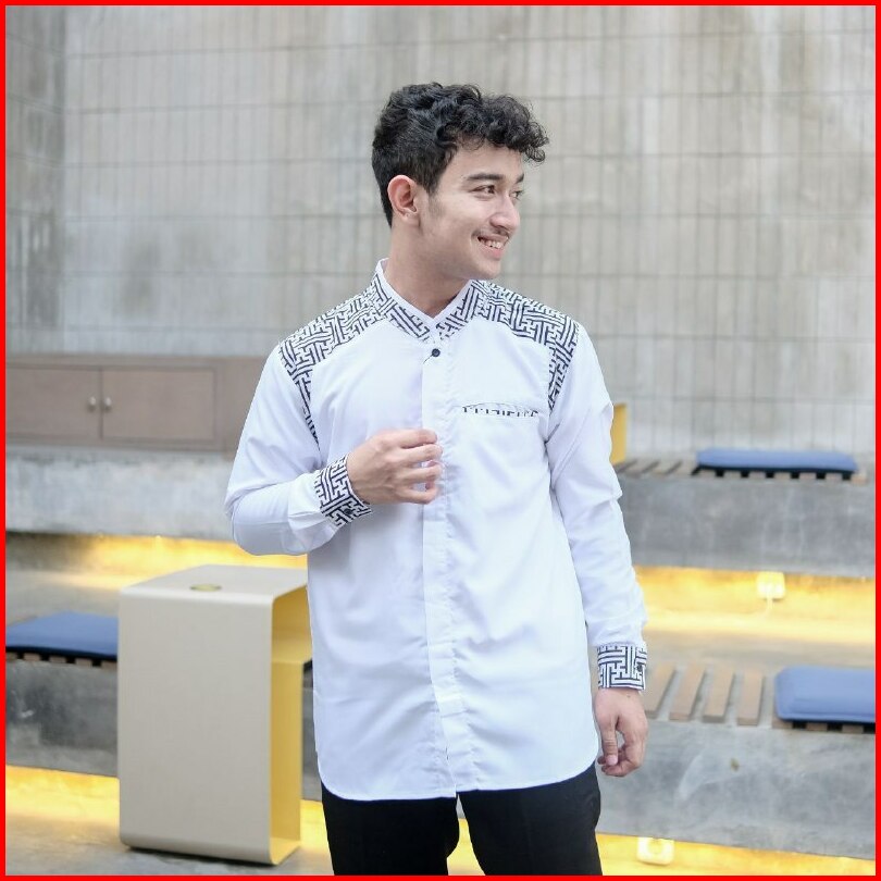 El Rumi Shop Baju Koko Pria Terbaru Lengan Panjang Kombinasi Batik Original Warna Putih