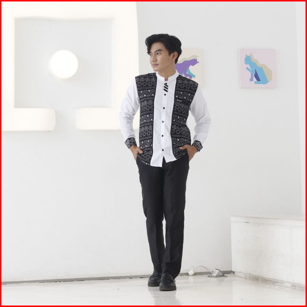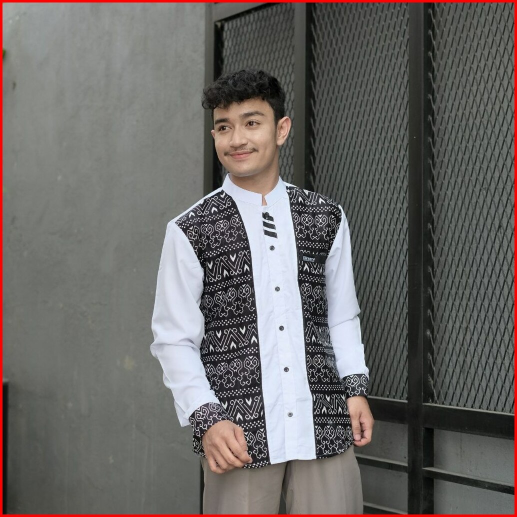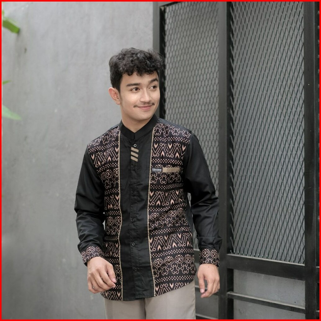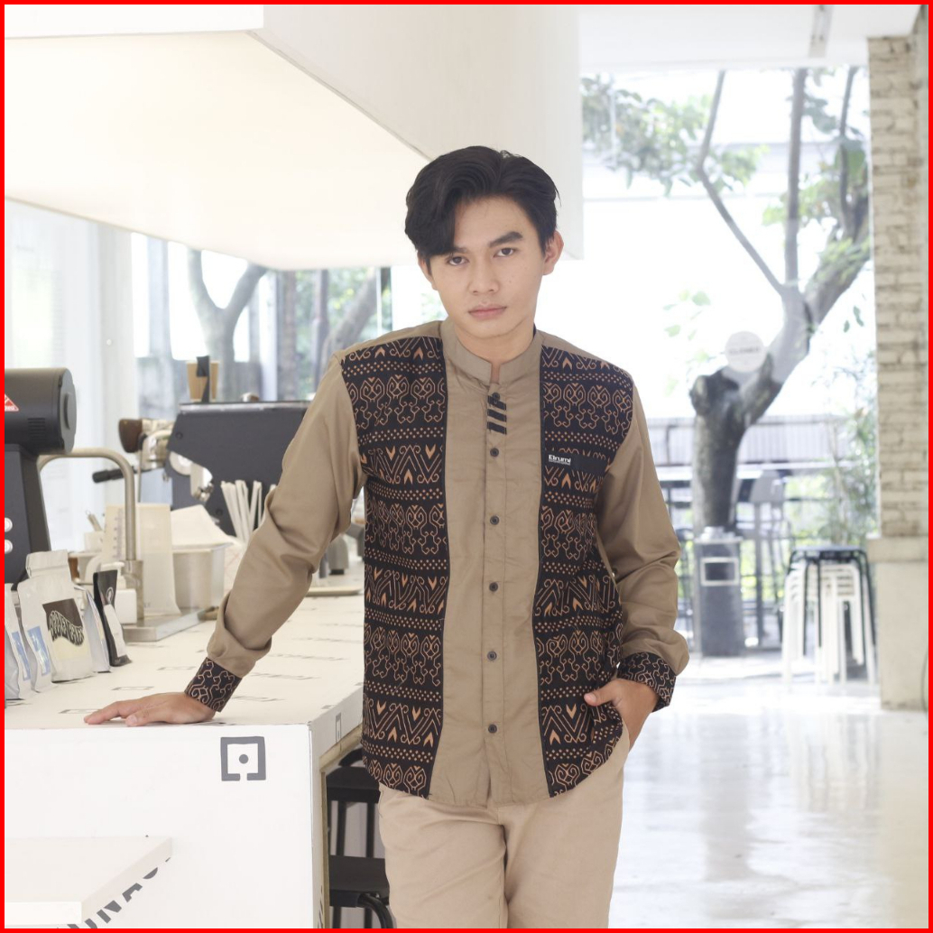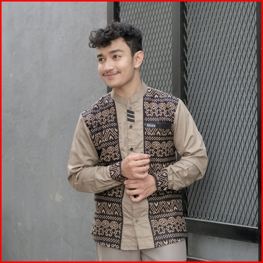 Baju Koko Pria Kombinasi Batik Lengan Panjang Fashion Muslim Elrumi Terbaru Motif Jarilist