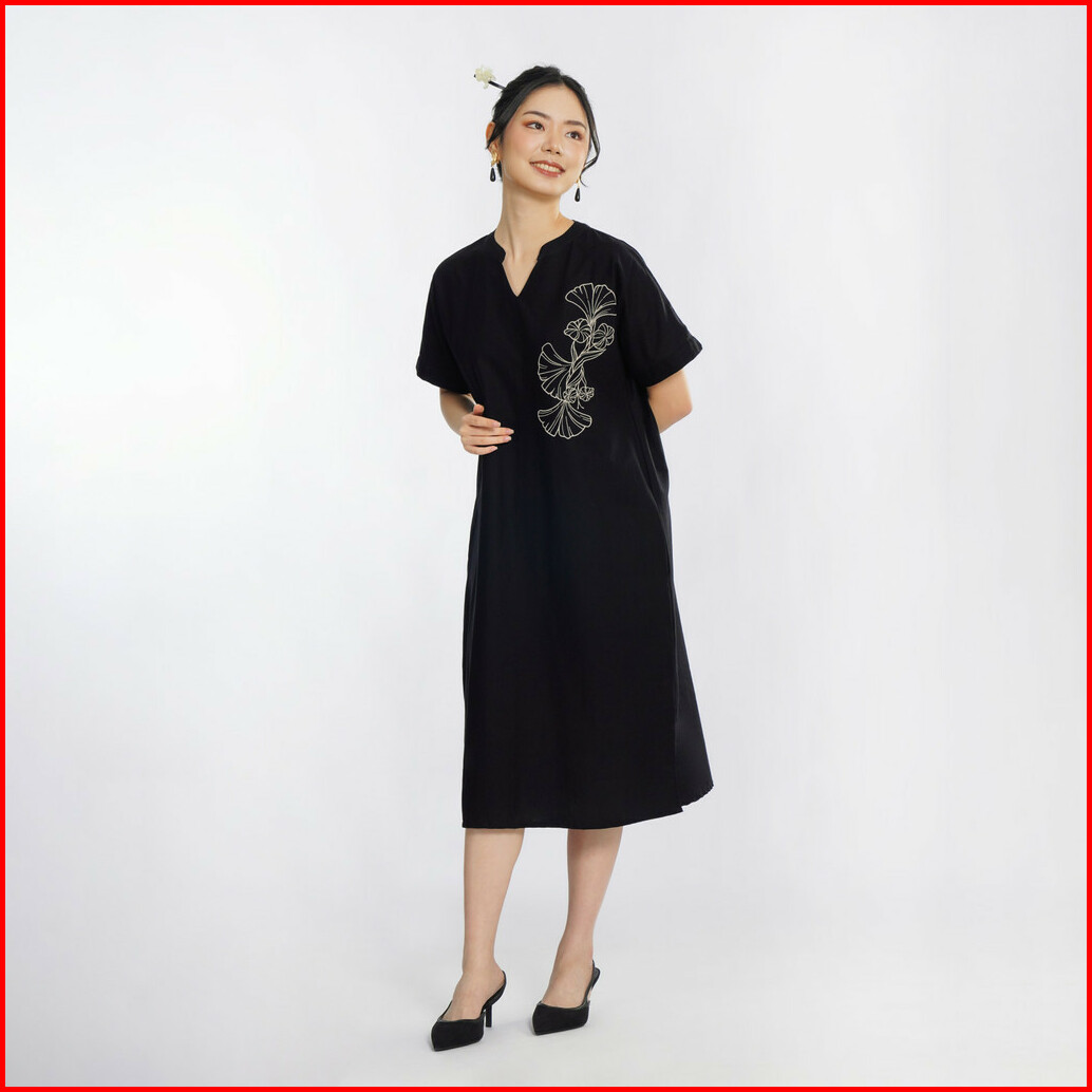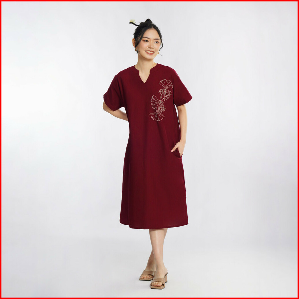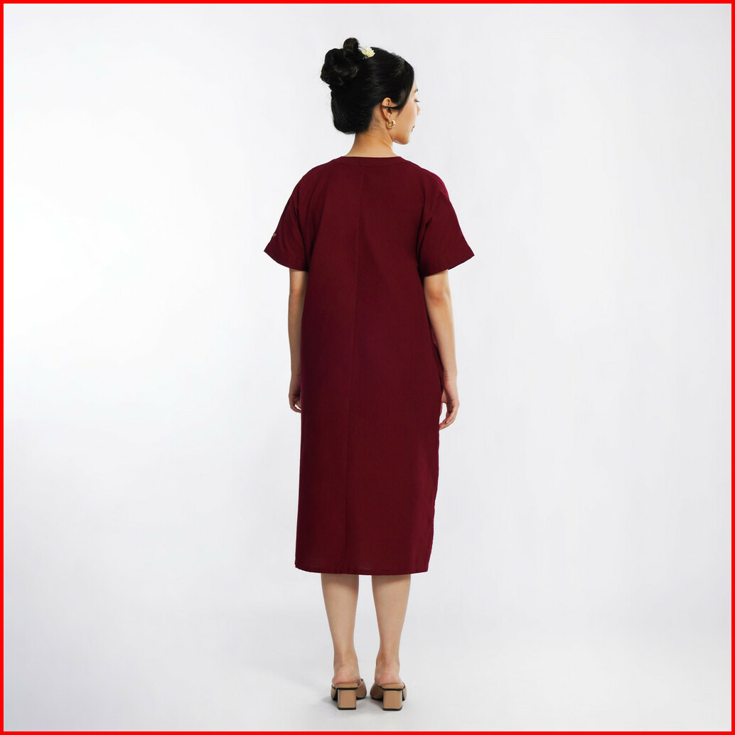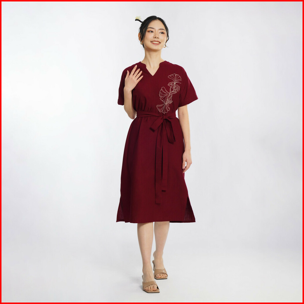 Momelca Nicola Midi Dress - Gaun Bahan Linen Untuk Wanita