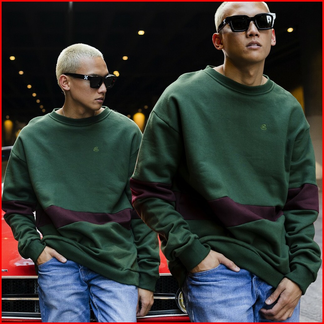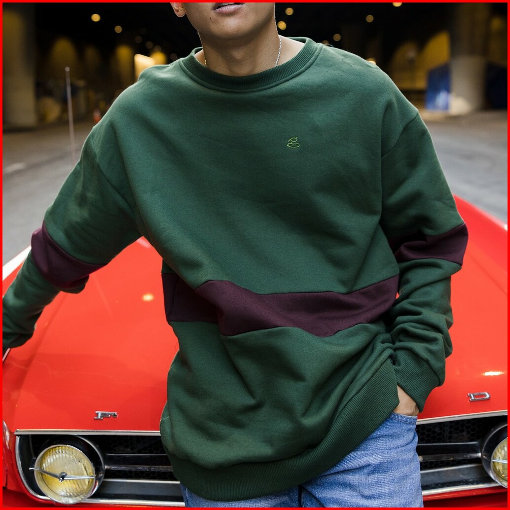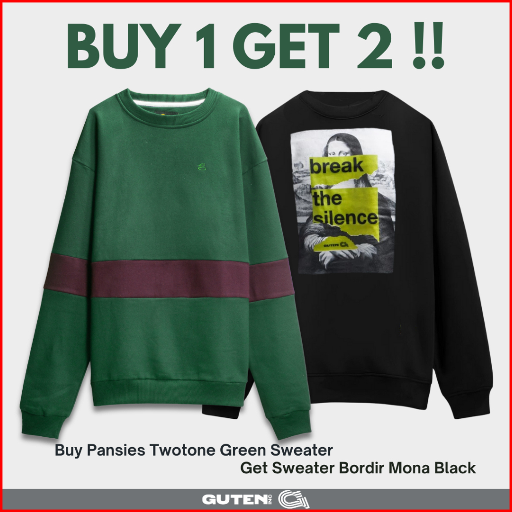 Guten Inc - Buy 1 Get 2 Pansies Twotone Green Sweater Bordir Pria Crewneck Oversized Fit Kompilasi