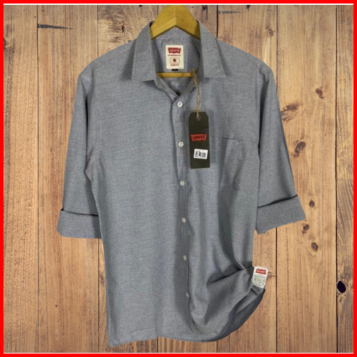 Kemeja Katun Polos - Kemeja Panjang Polos Kasual Formal Slimfit Pria Kekinian - Kemeja Panjang Denim Pria Terlaris - Kem