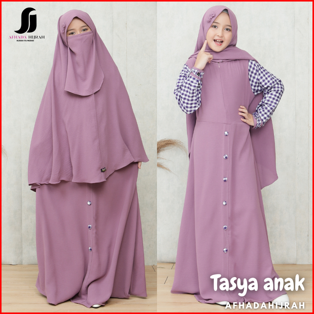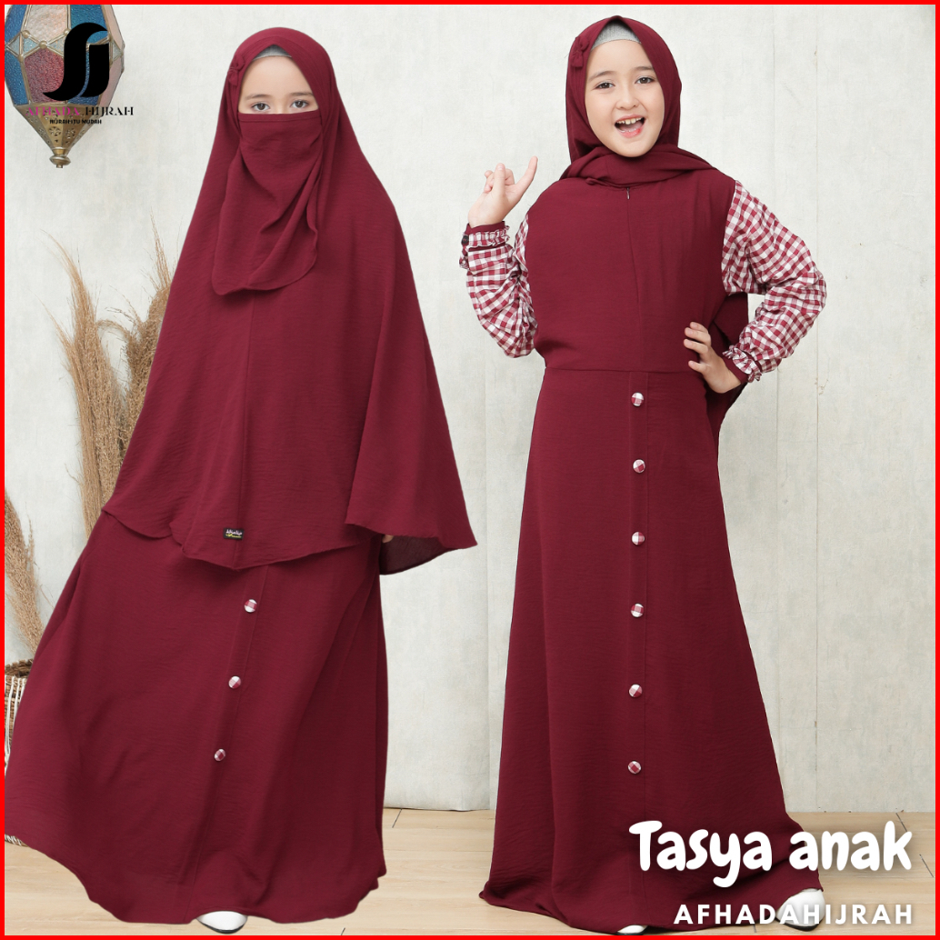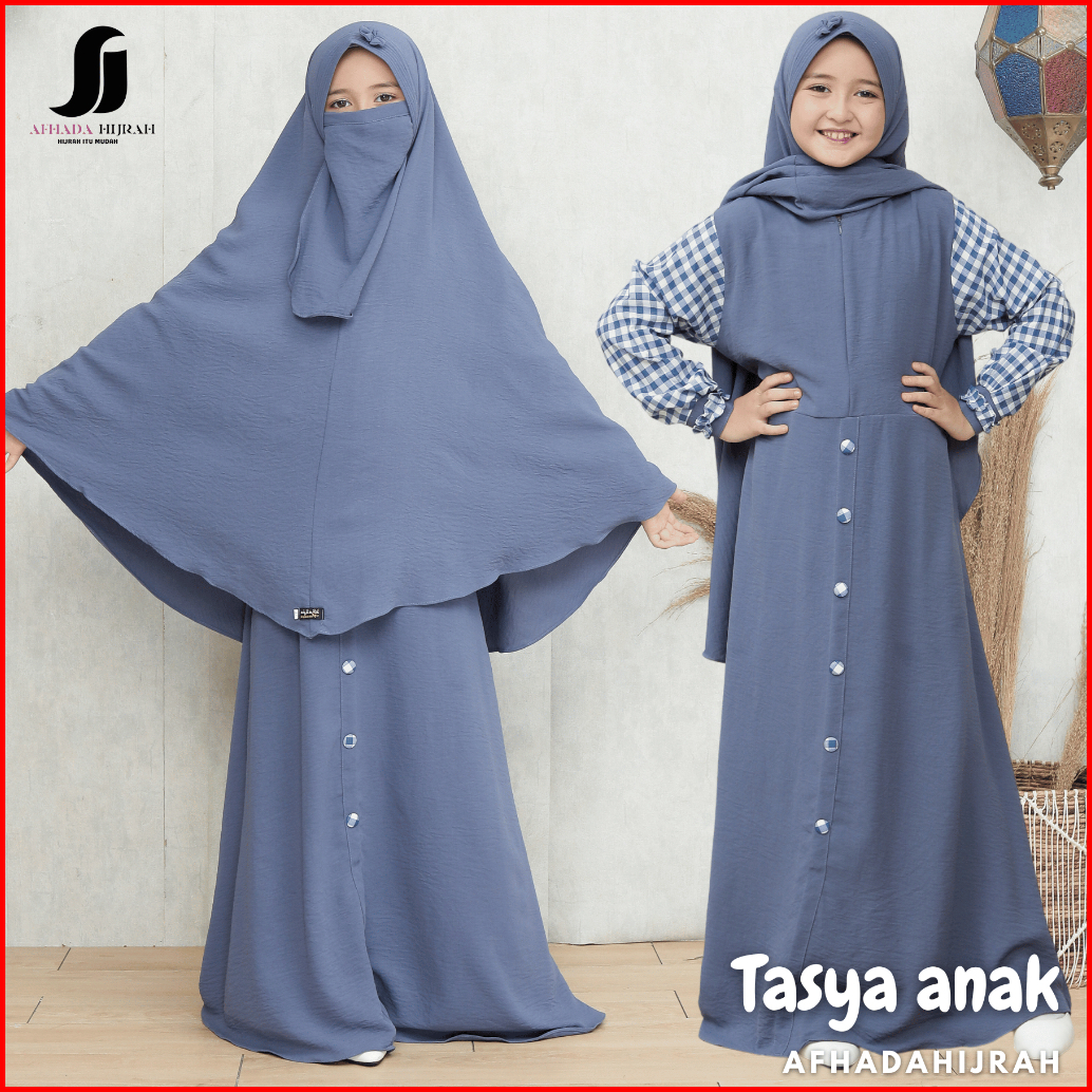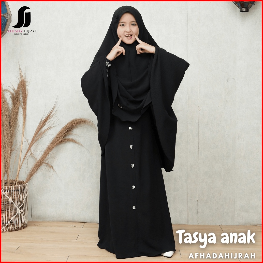 Afhadahijrah - Gamis Anak Perempuan Set Cadar Tasya Formal Black Terbaru Baju Dan Hijab Syari Free Niqab