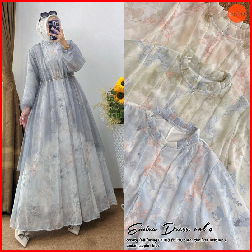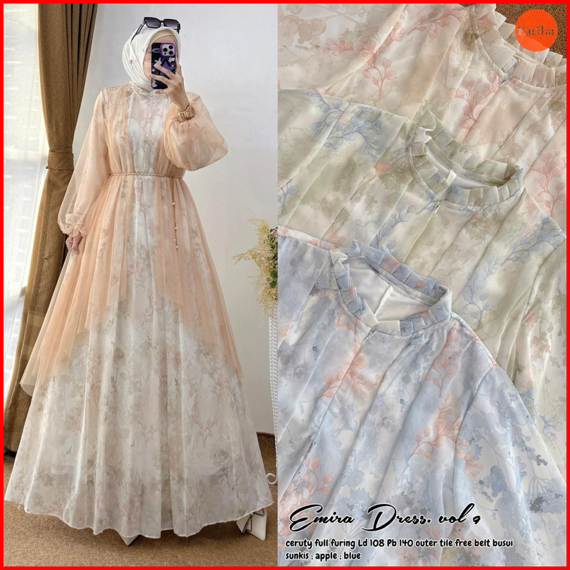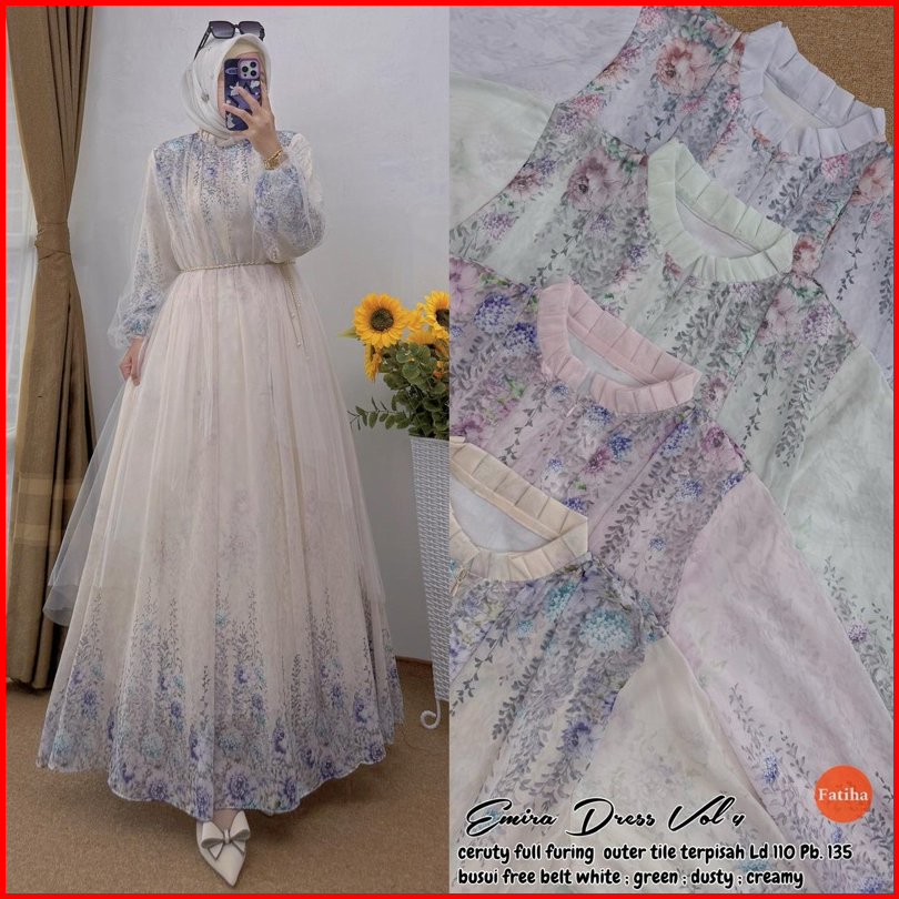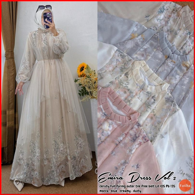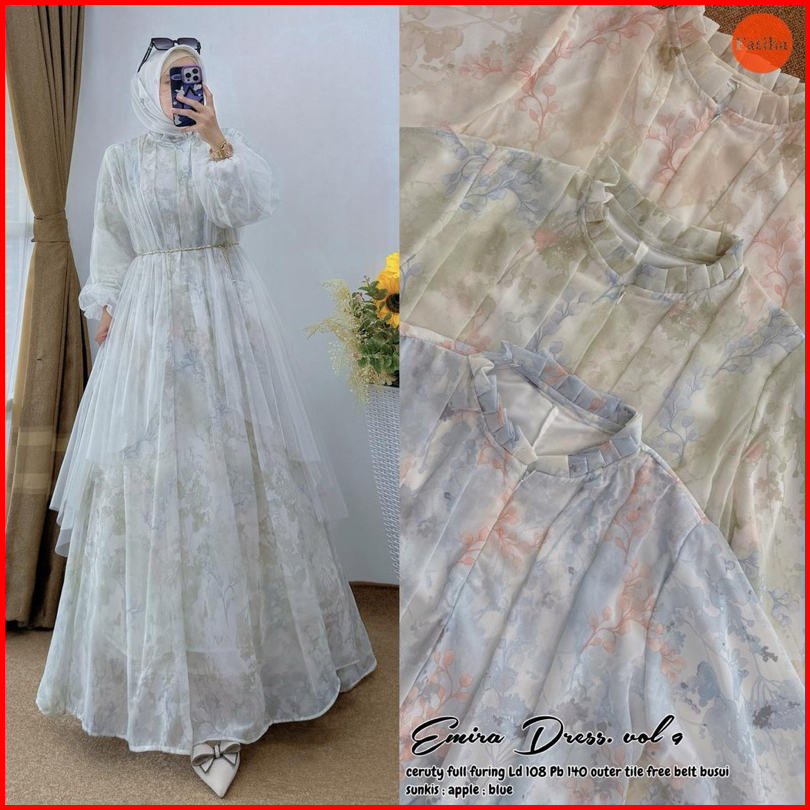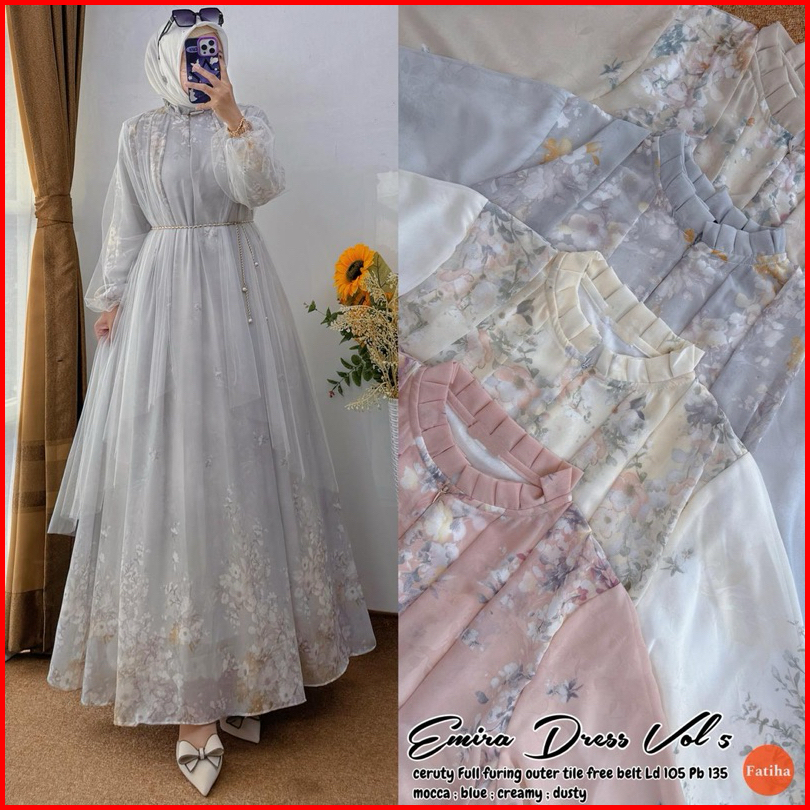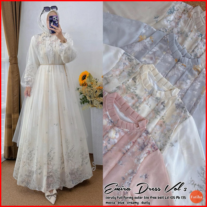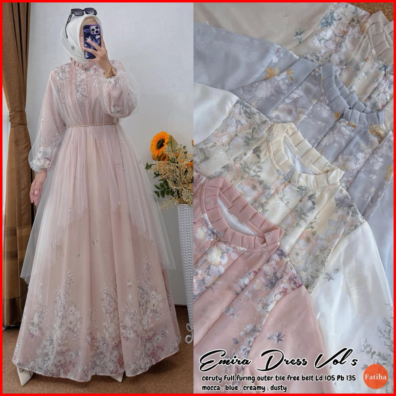 Emira Gamis Kekinian Marwah Maxy Ceruty Set Outer Motif Good Quality