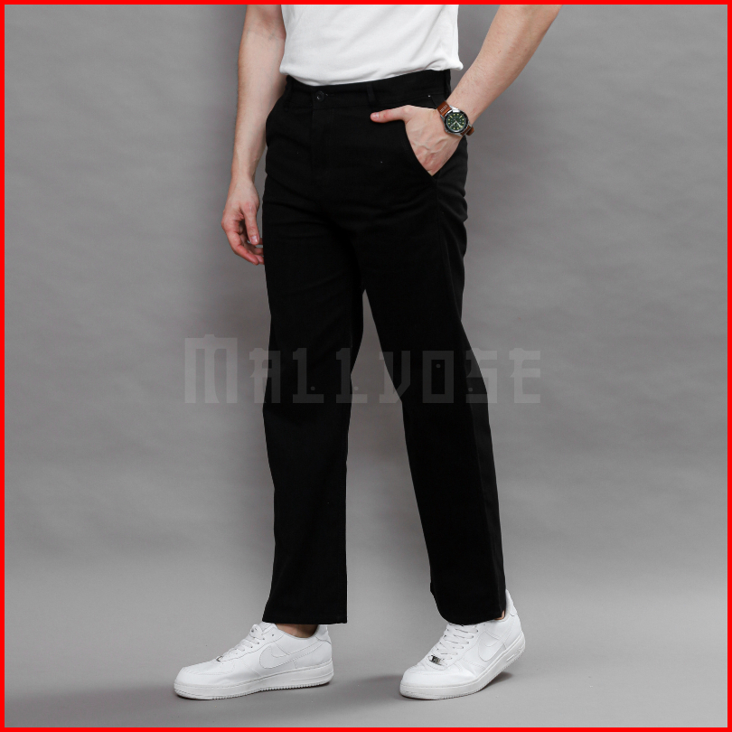 Mallvose - Celana Pria Chino Premium Panjang 100cm Black Regulerfit