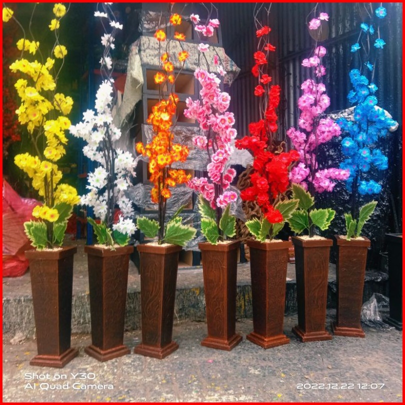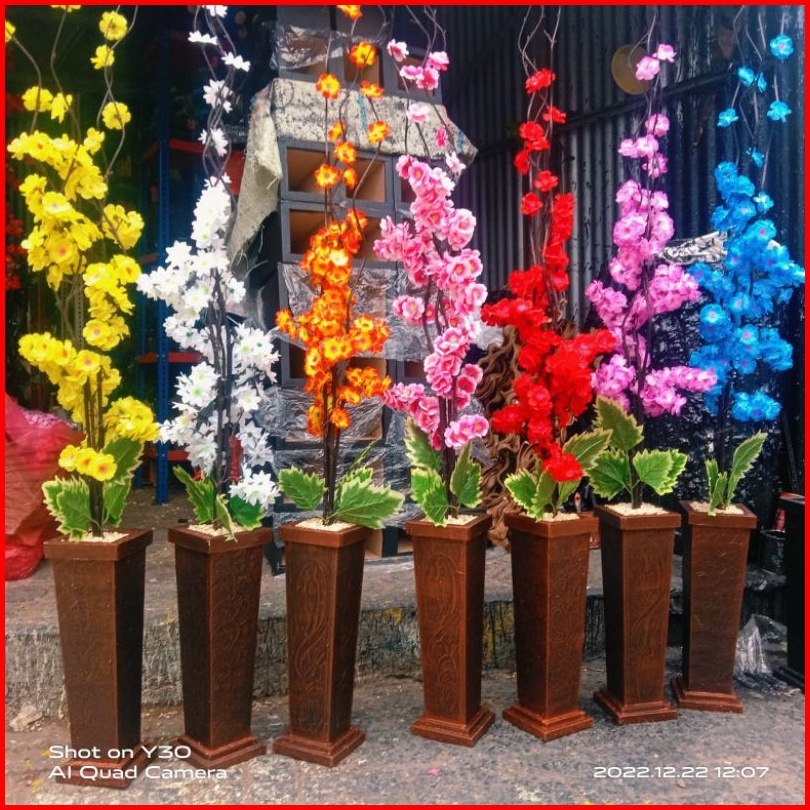 Bunga Hias Sakura Blosom Vas Dan Batu Tinggi 150cm Sakura Lokal Ulir Lengkap Pot Bebatuan Bunga Hias Artificial Dekorasi