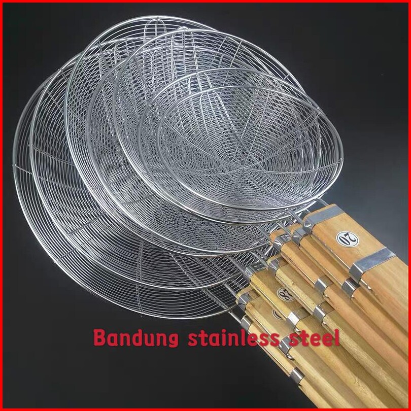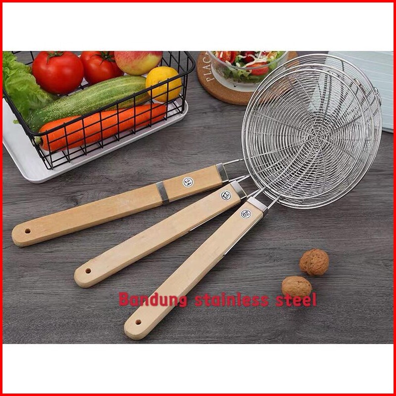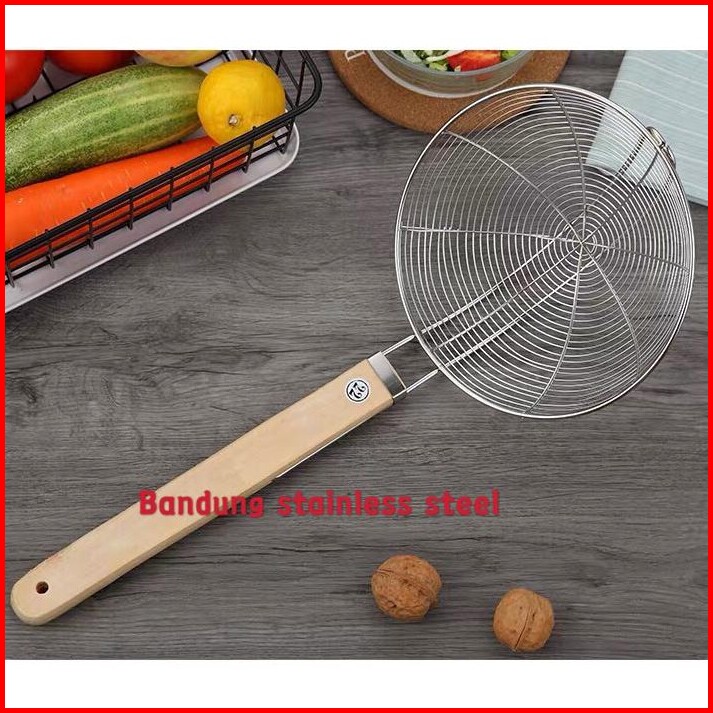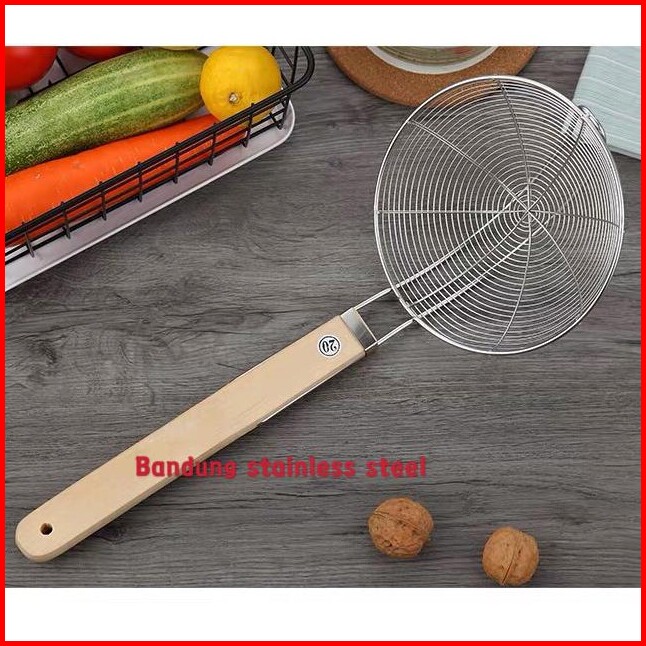 Saringan Mie Saringan Gorengan Parabola Stainless Kayu Serok Tebal 20cm 22cm 24cm