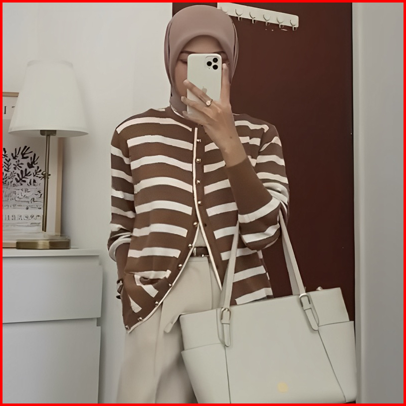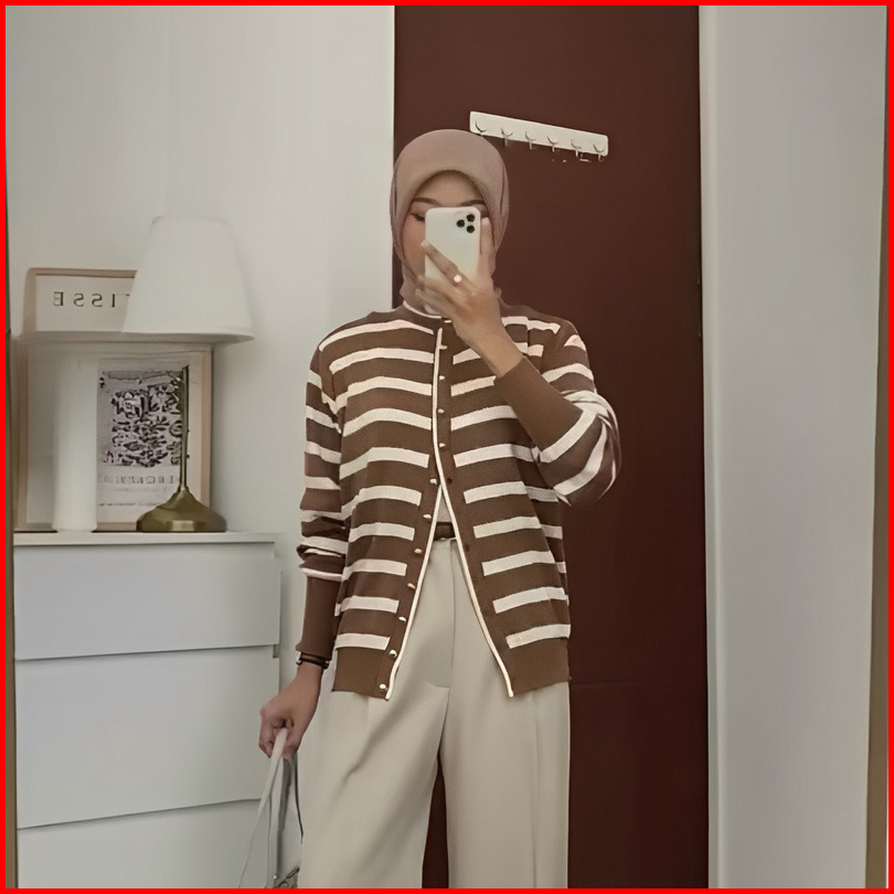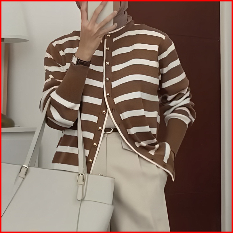 Atasan Knit Stripes Zoya Sweater-cardigan Stripes Wanita