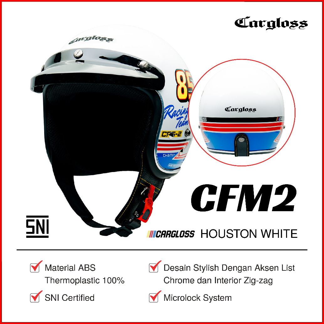 Cargloss Cfm 2 Nascar Series Retro Helm Half Face - Houston White