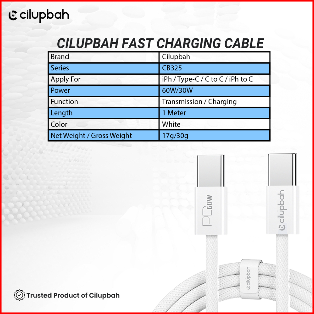 Cilupbah Power Charger Adaptor Gan Pd C 20w And Cable Type C To C To Lightning 60w Fast Charging