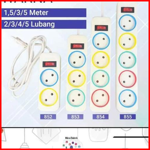 Stop Kontak 2 3 4 5 Lubang Panjang 1 5m - 5m Kabel Colokan Listrik Model Gepeng