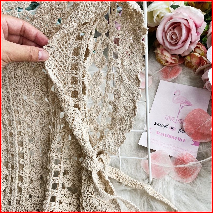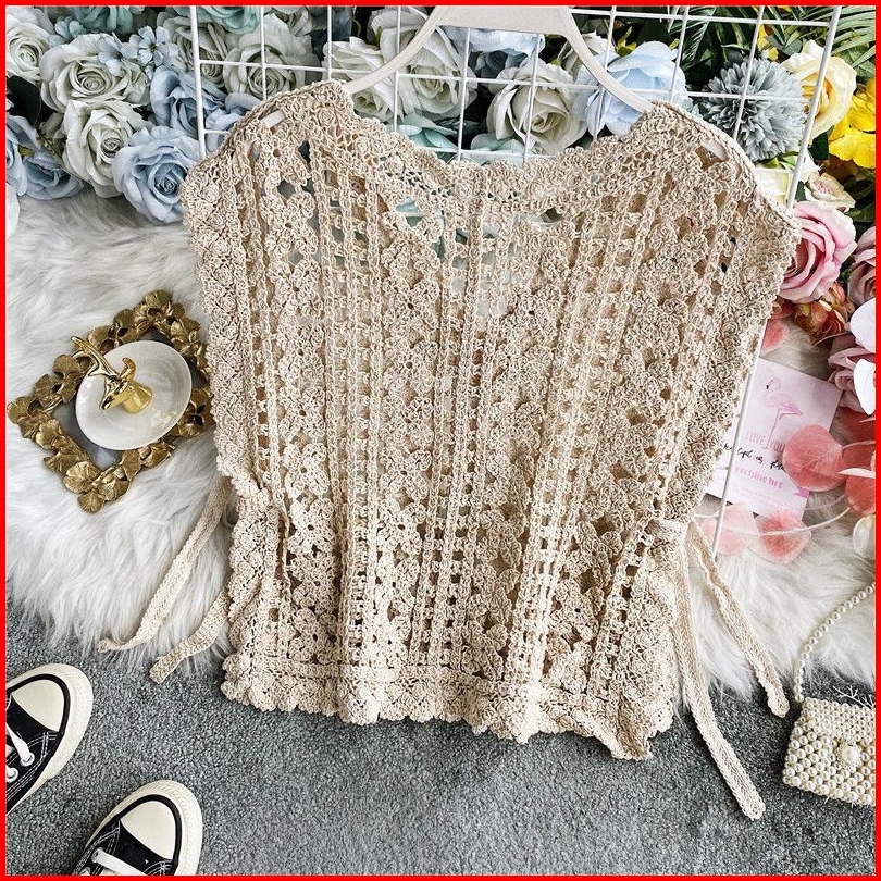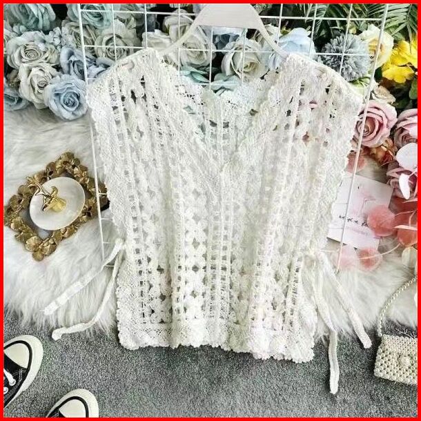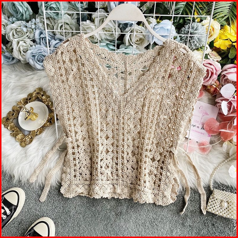 Vest Rajut Renda Wanita Atasan Calvina Crochet Import