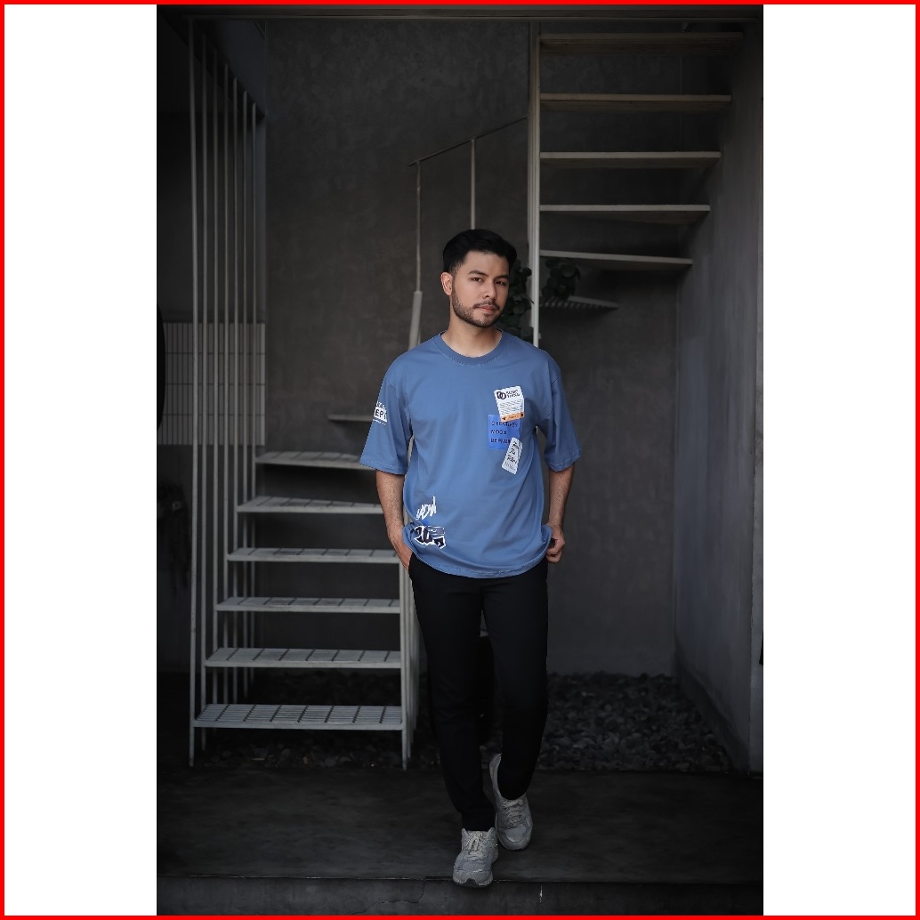 Ootdsupply Oversized Tshirt Future Steel Blue Black L Kaos Oversize Pria Dan Wanita Ovz130