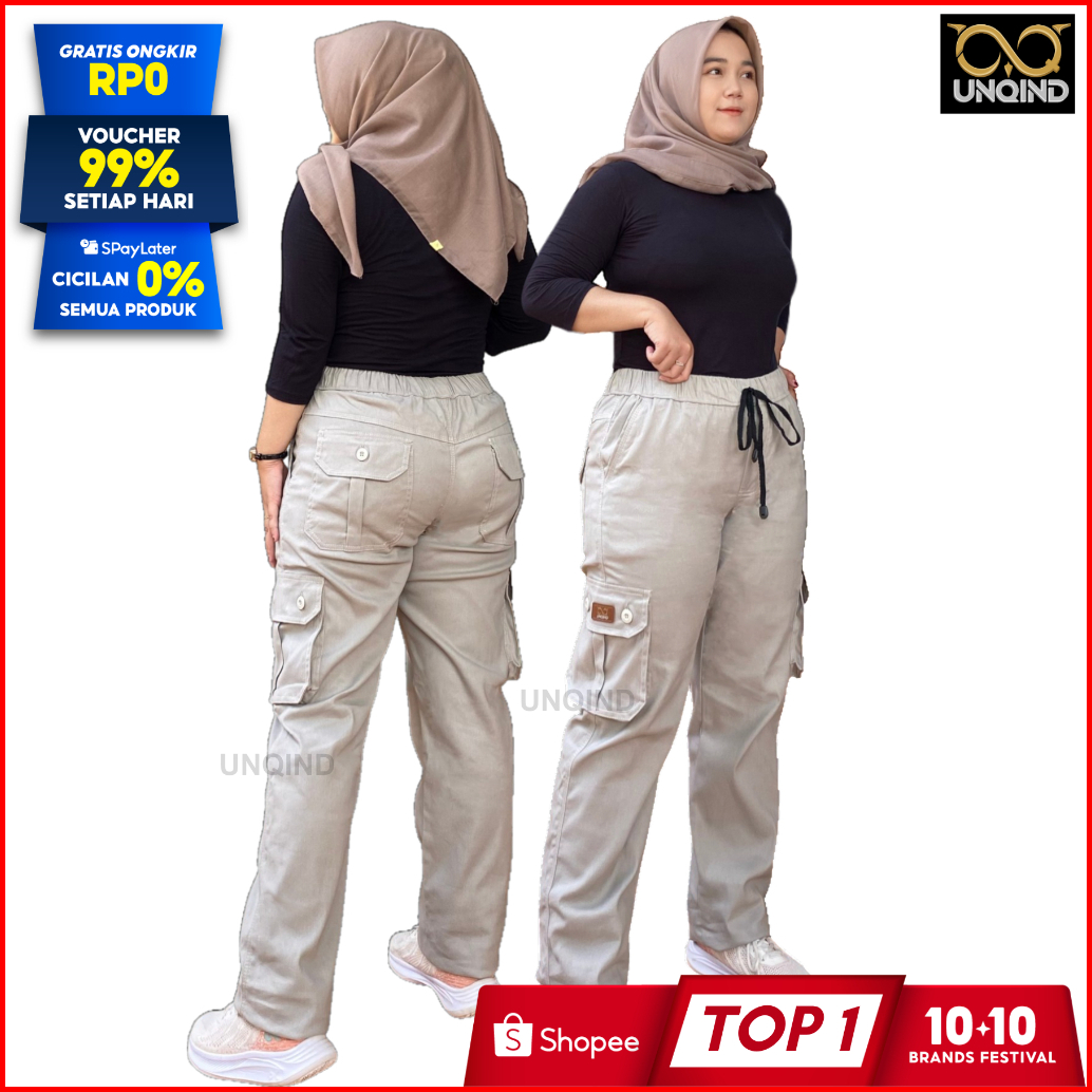 Unqind - Celana Cargo Wanita Jumbo Twill Stretch - Celana Panjang Wanita Jumbo Melar