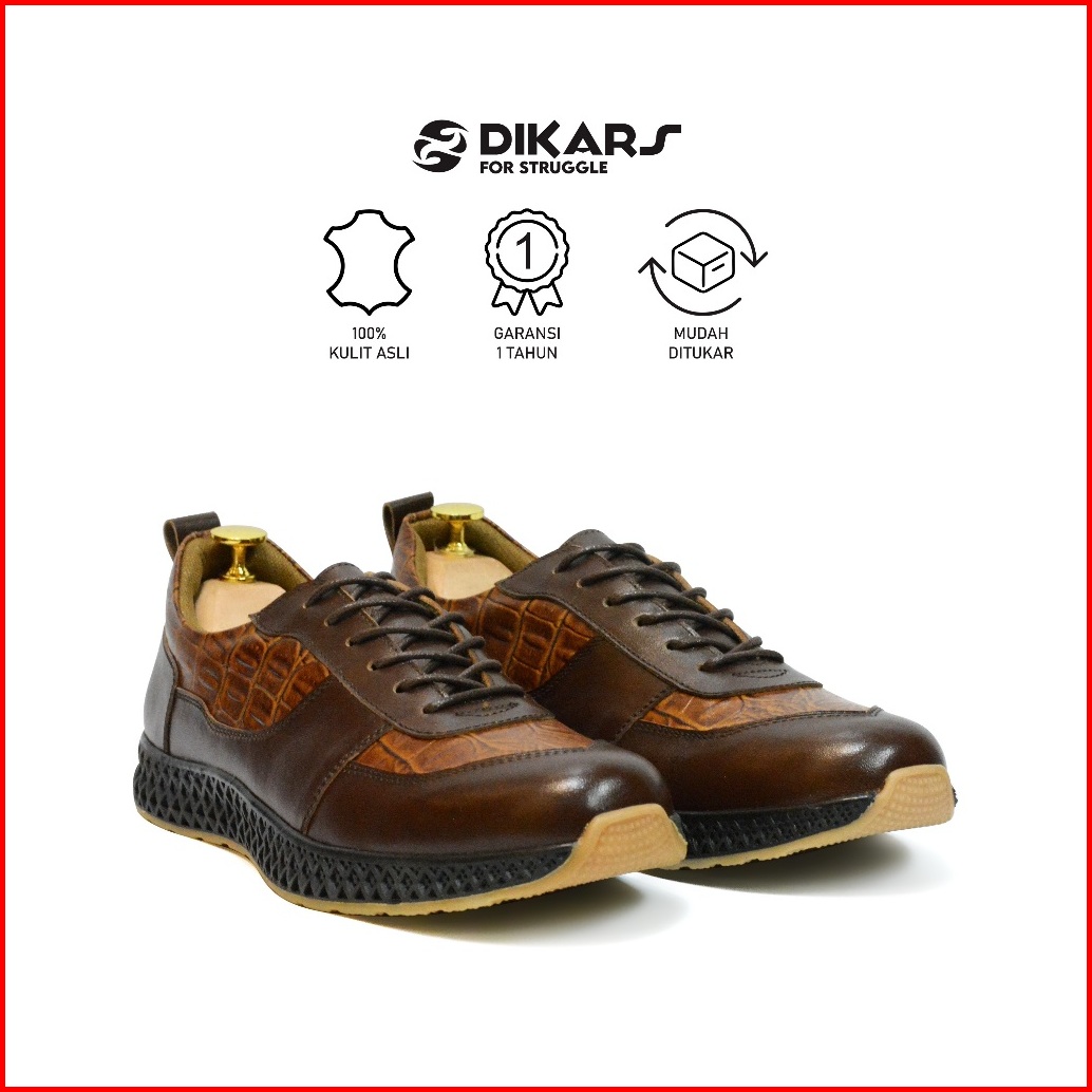 Dikars - Kratos Brown Croco Sneakers Pria Kulit Asli