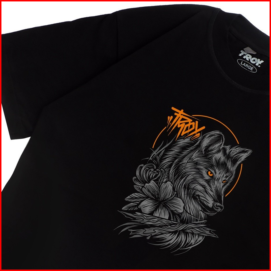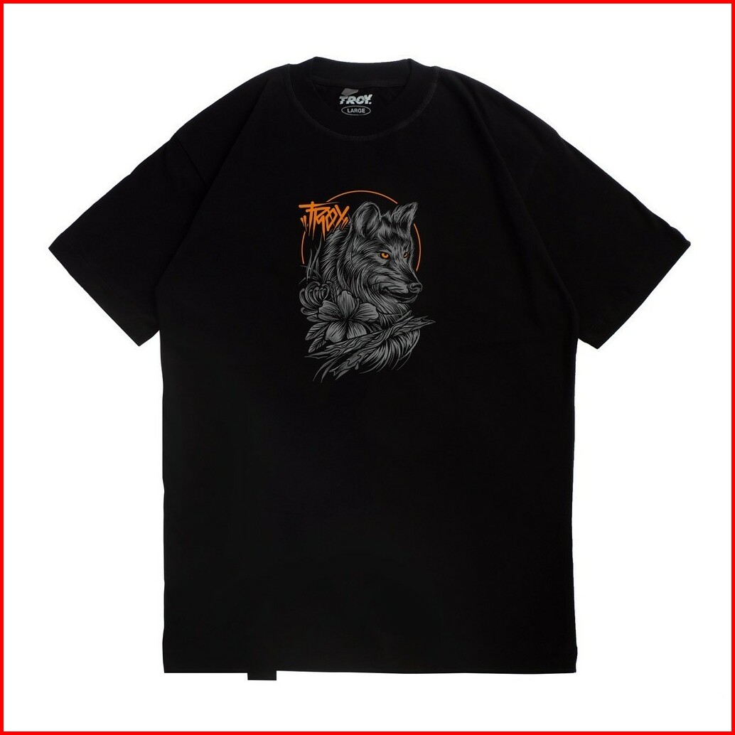 Troy Company Tshirt Black Flower Wolf - Kaos Pria Lengan Pendek Hitam Mt 1966