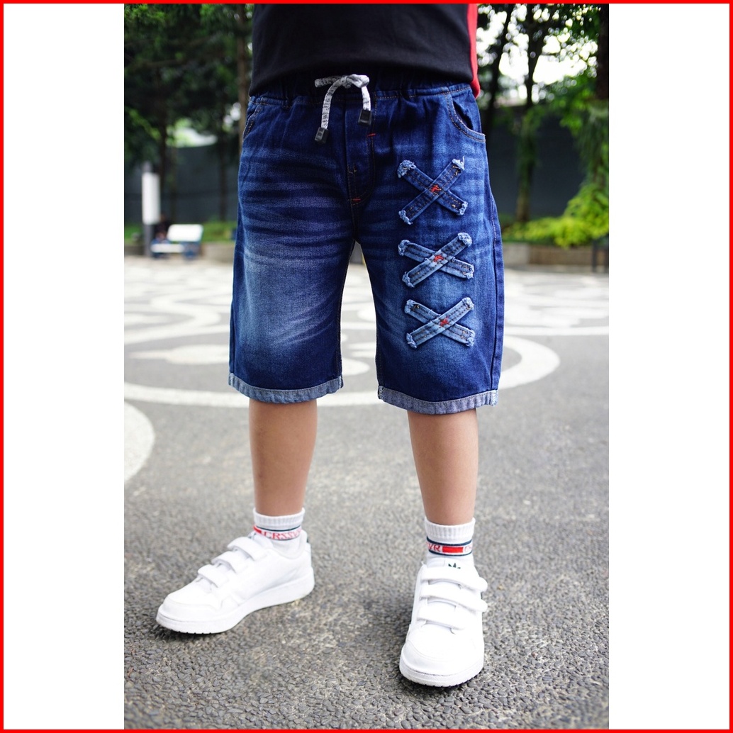Celana Jeans Anak 2-10 Tahun - Celana Anak Laki-laki Jeans Pendek Biru Tua Silang - Gembo Kids