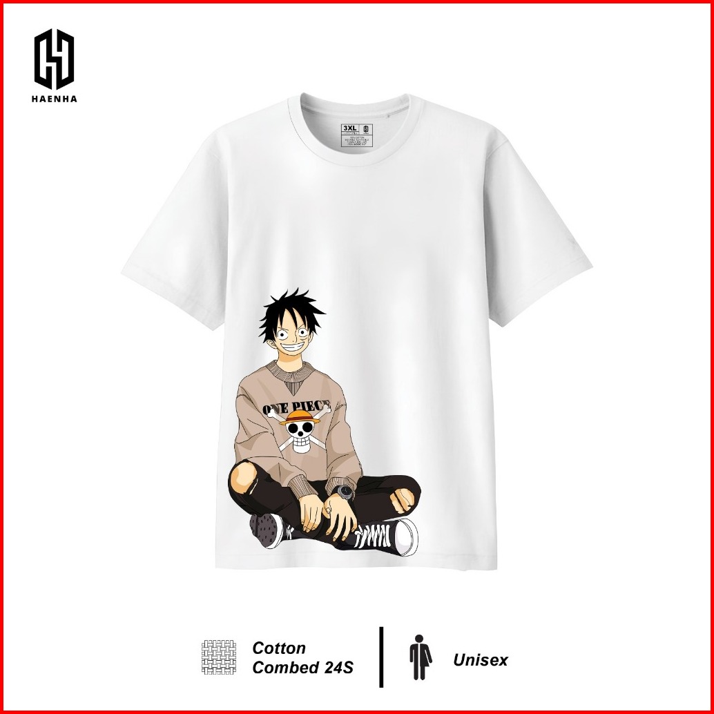 Haenha One Piece Luffy Baju Kaos Distro - T Shirt Sablon Unisex