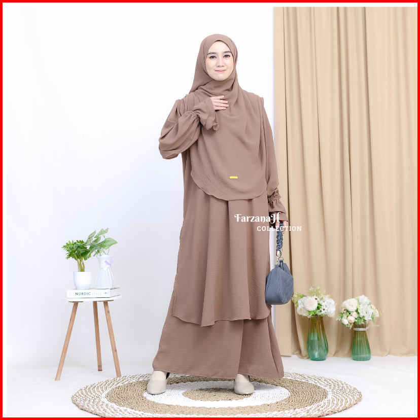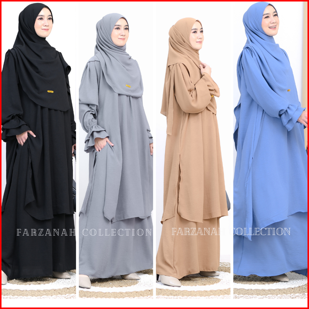 One Set Abaya Khadijah Rok Long Tunik Pasmina Crinkle Airflow Setelan Abaya Umroh Hajian Terbaru L Xl 2xl