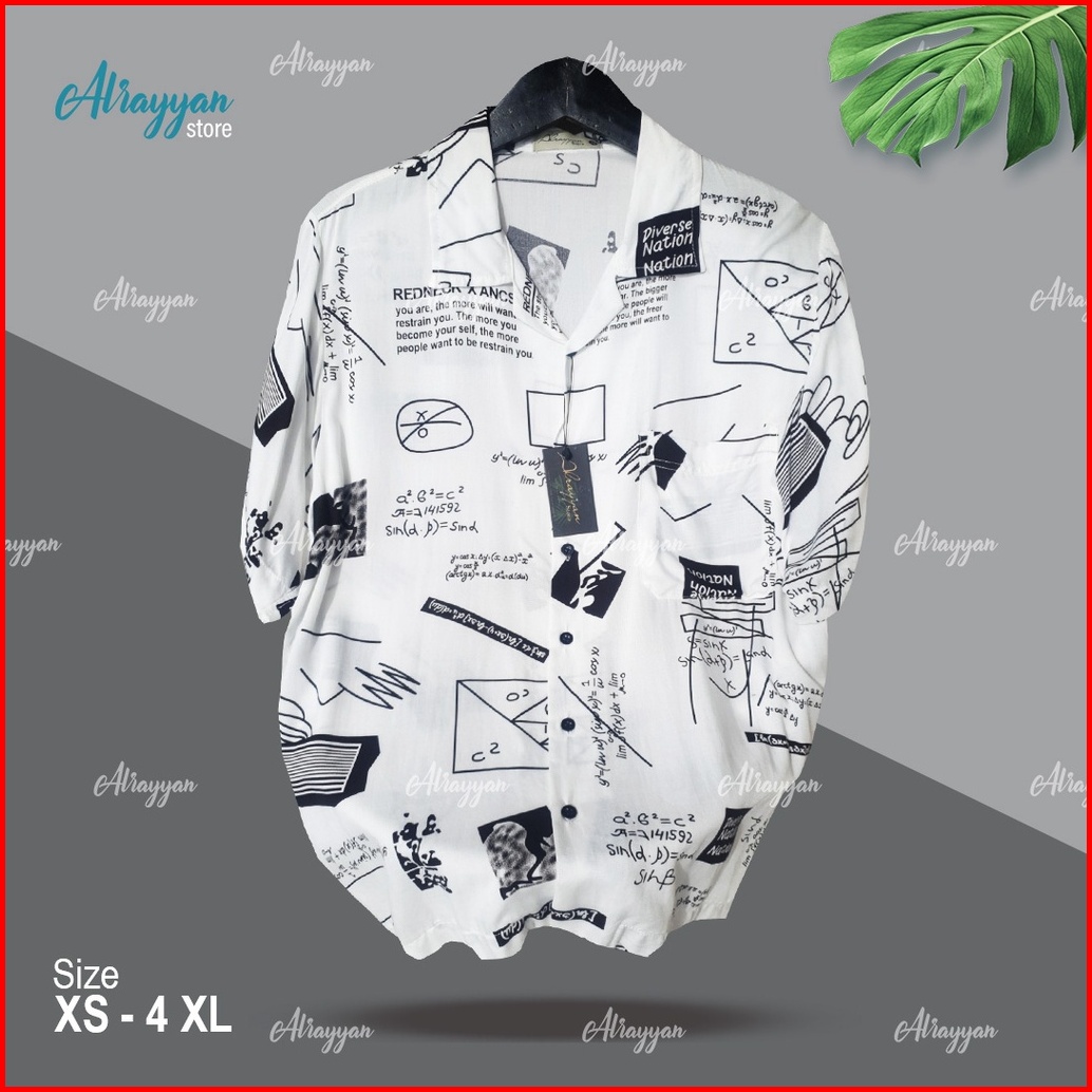 Alrayyan Store - Kemeja Hawai Bali Lengan Pendek Pria Wanita Mathematics White