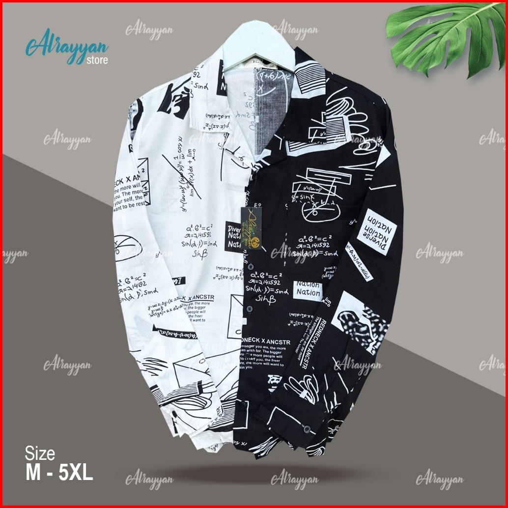 Alrayyan Store - Kemeja Hawaii Motif Kombinasi Lengan Panjang Pria Wanita Baju Santai Hawalili Bali Unisex