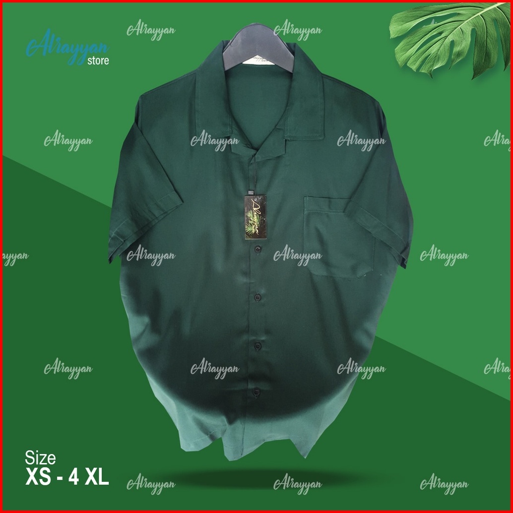 Alrayyan Store - Kemeja Kasual Hawai Lengan Pendek Dark Green Polos Pria Wanita