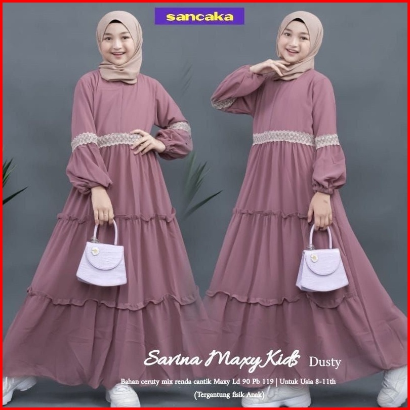 Gamis Anak Remaja Perempuan Ceruty Usia 8-9 -10-12 -14-15-16 -18 Savina Dress Gamis Anak Tanggung..