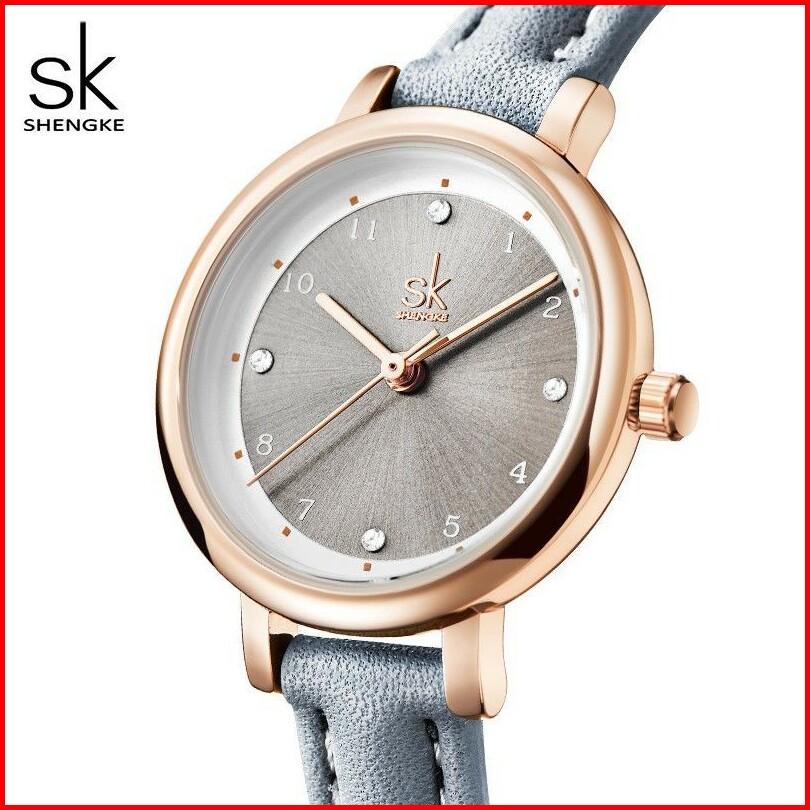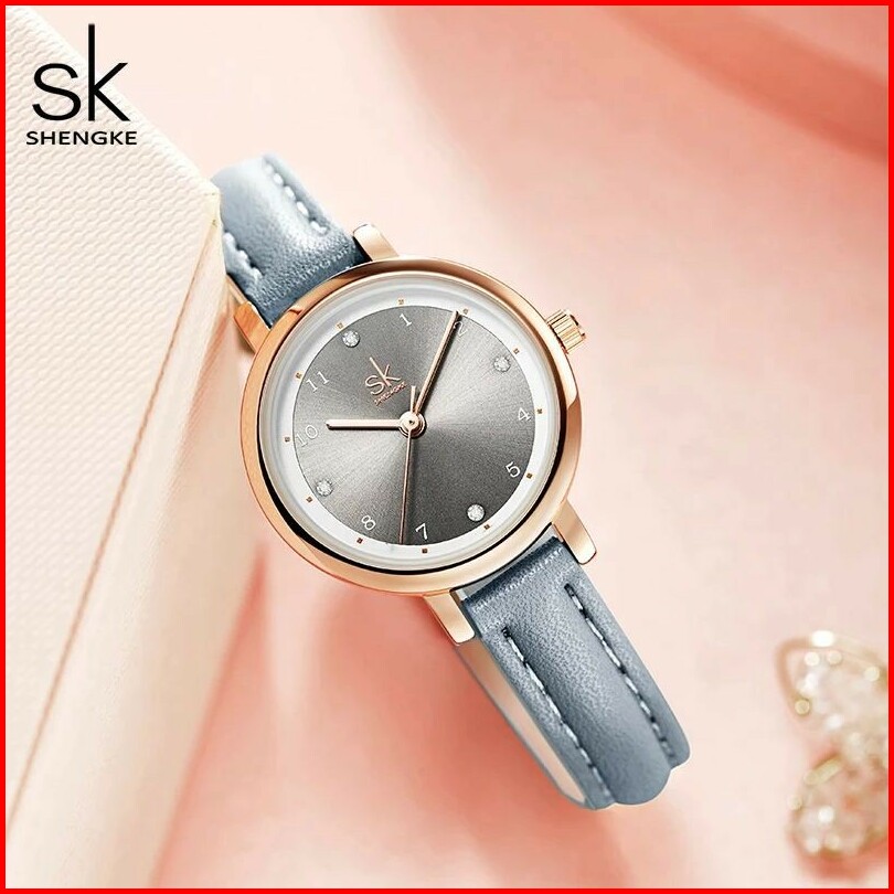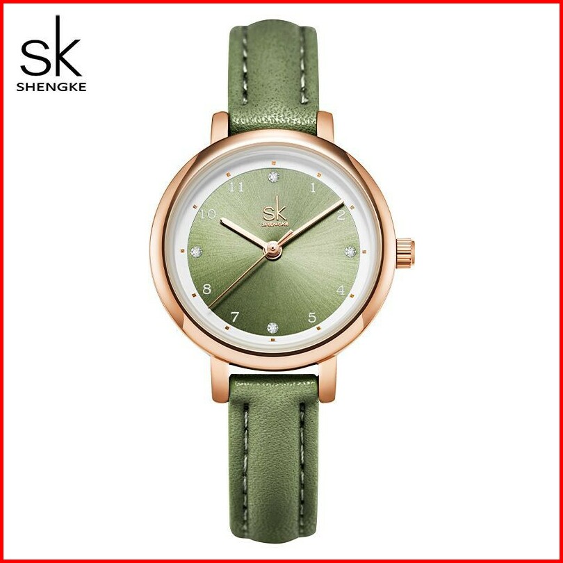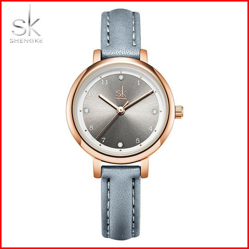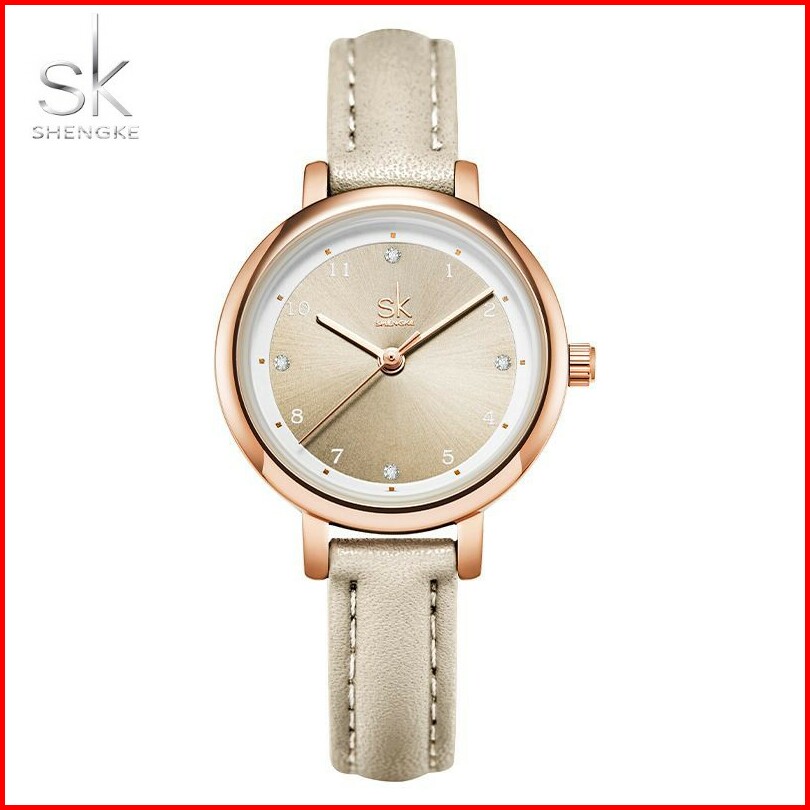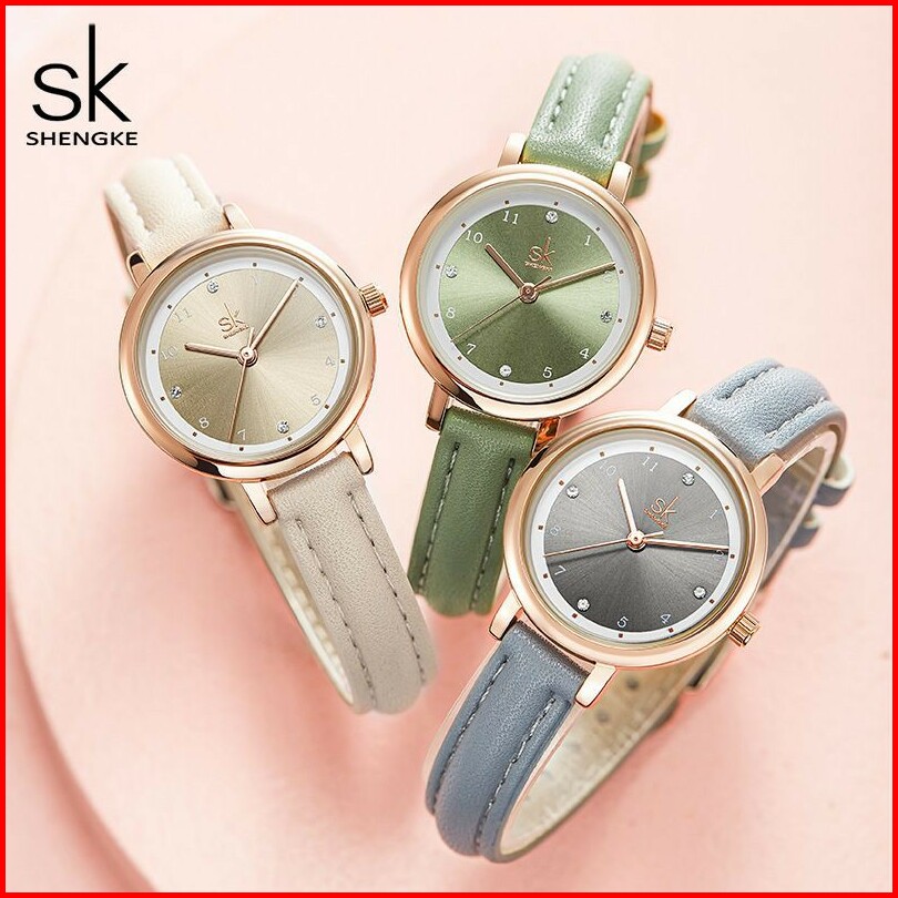 Shengke 9028 Jam Tangan Wanita Analog Tali Kulit Quartz Simple Casual Currenos