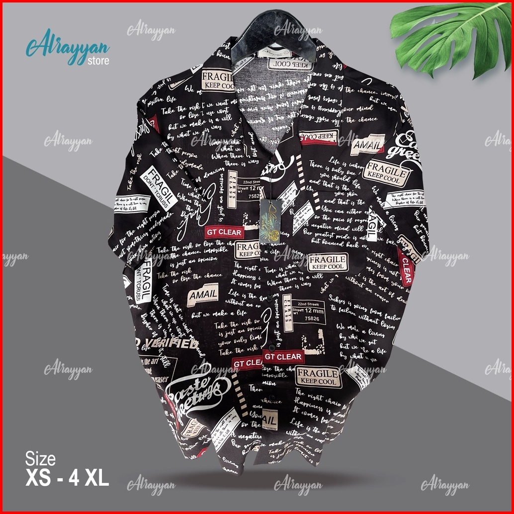 Alrayyan Store - Kemeja Hawaii Rayon Motif Write Lengan Pendek Men And Women Baju Full Print Jumbo Unisex