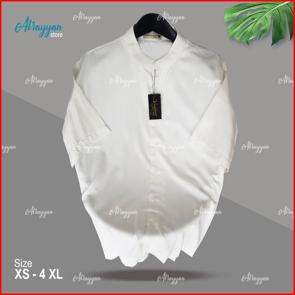 Alrayyan Store - Baju Kemeja Kerah Shanghai Broken White Polos Lengan Pendek