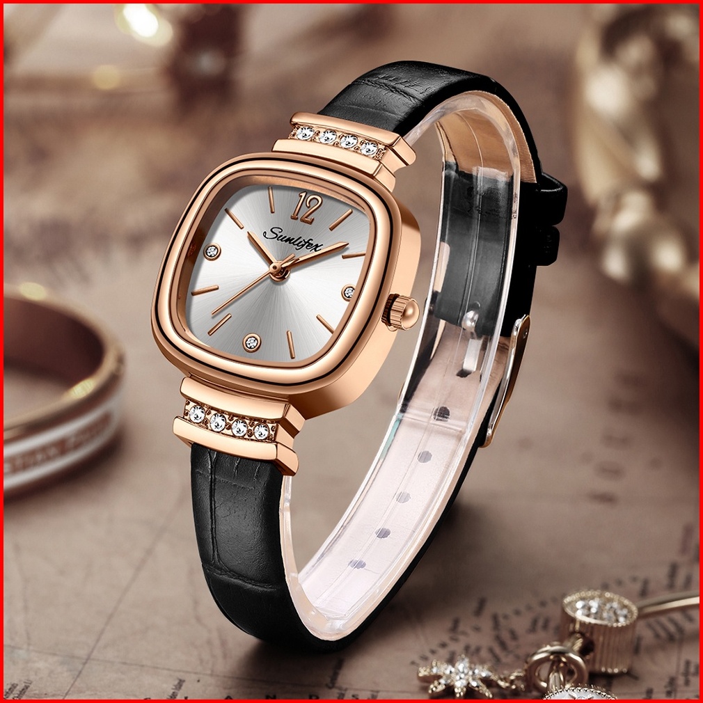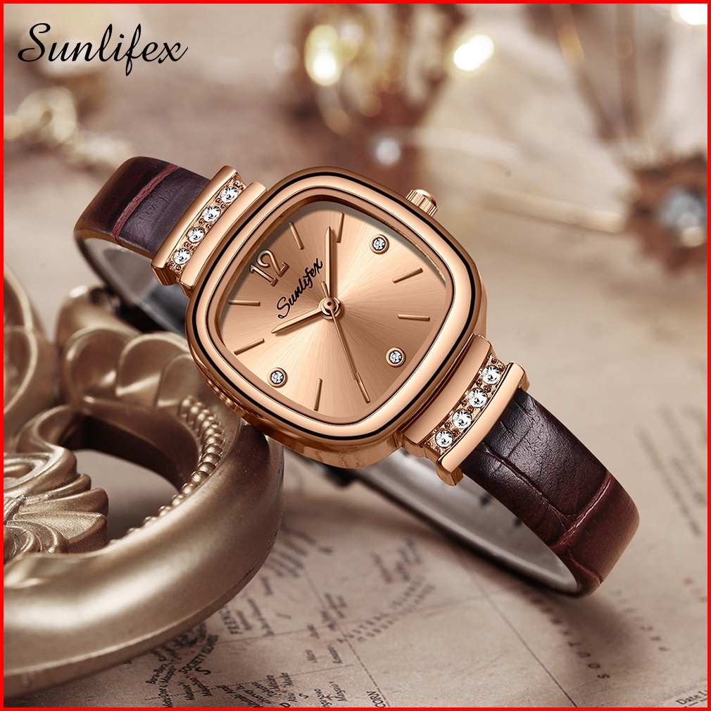 Sunlifex 8001 Jam Tangan Wanita Original Berlian Gaya Antik Anggun Jam Kuarsa Tali Kulit Jam Tangan Cewek