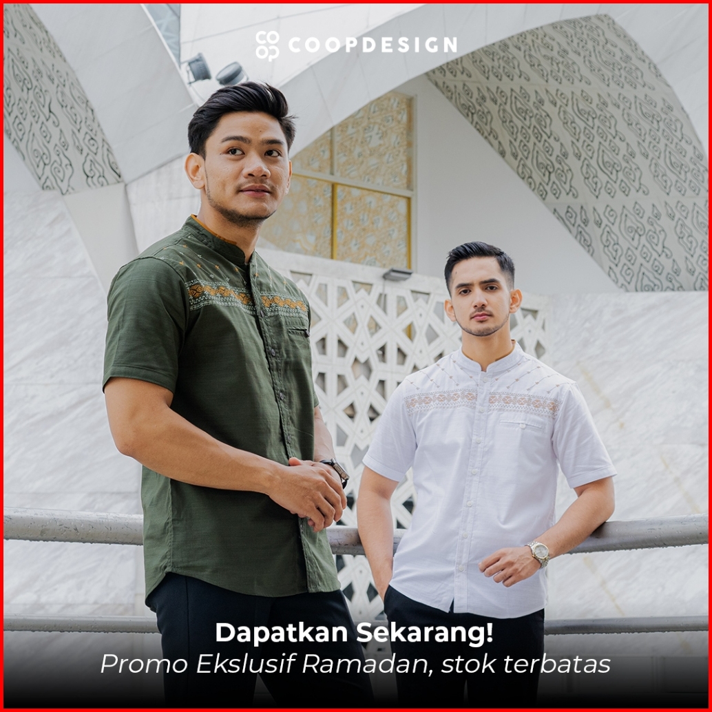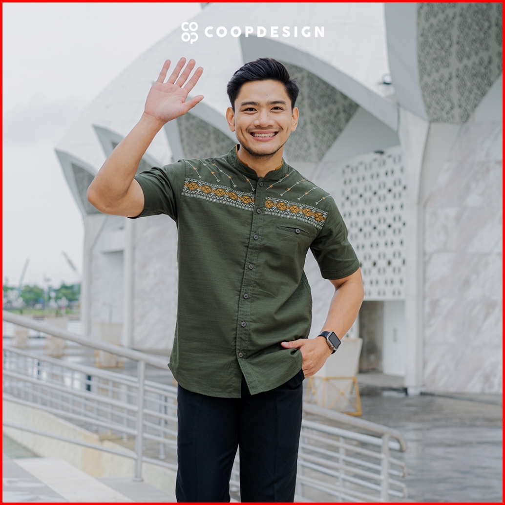 Coop Design - Fauzan Koko Kerah Changi Collarless Katun Dengan Saku Bordir Pria Lengan Pendek