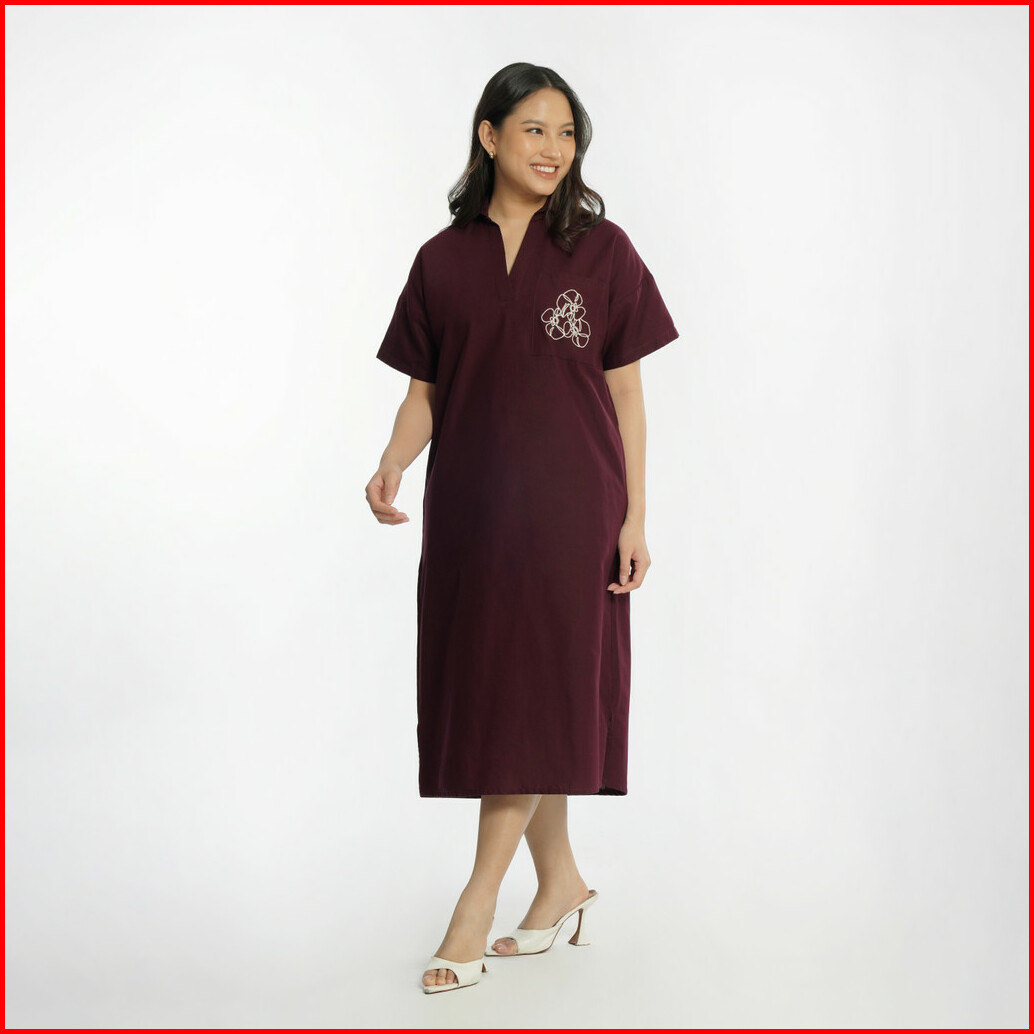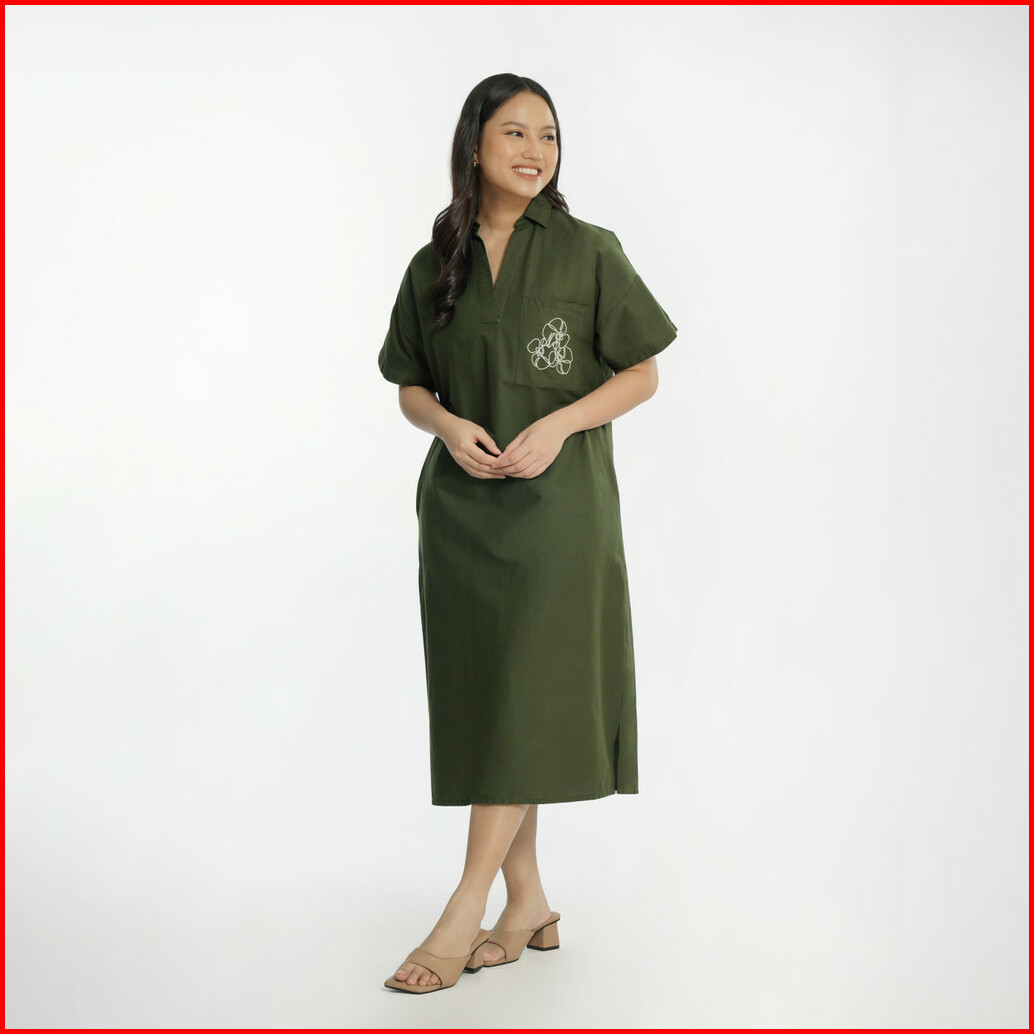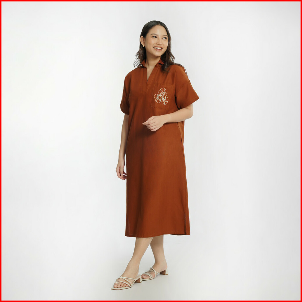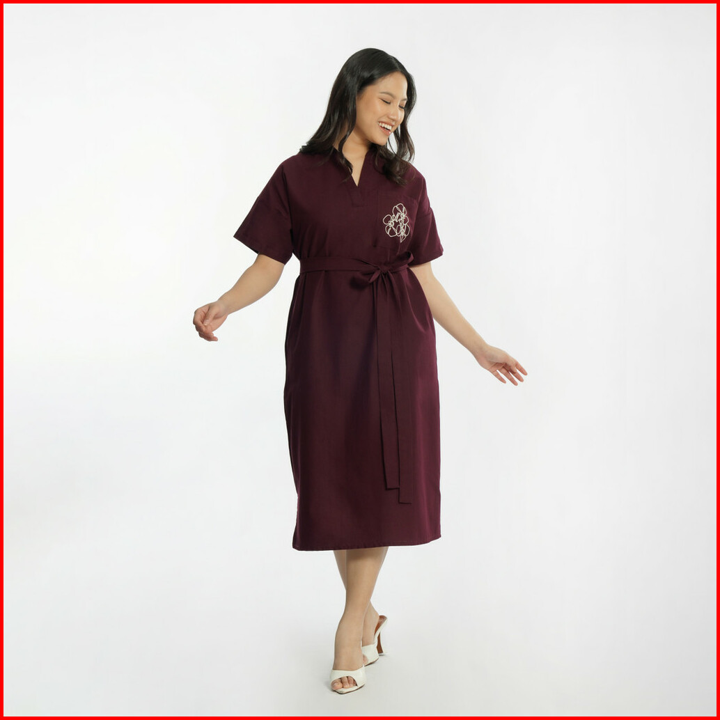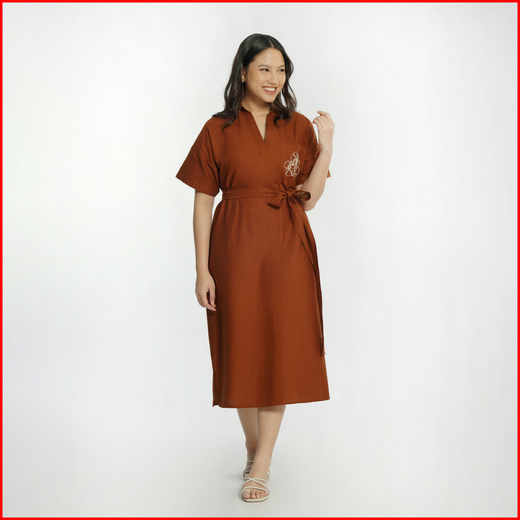 Momelca Blanka Midi Dress - Gaun Bahan Linen Premium Wanita