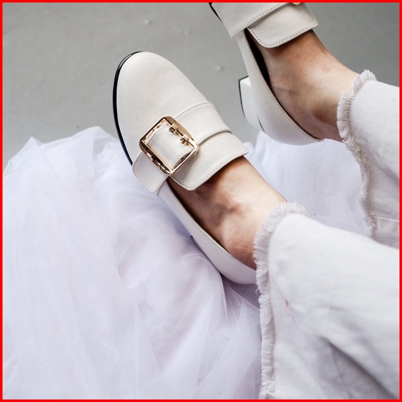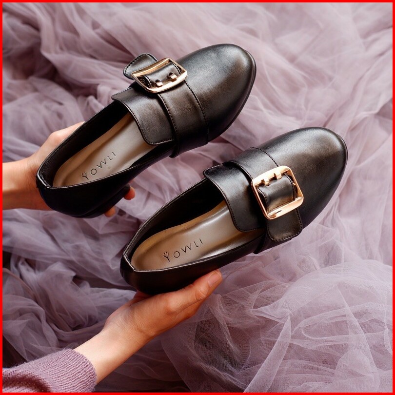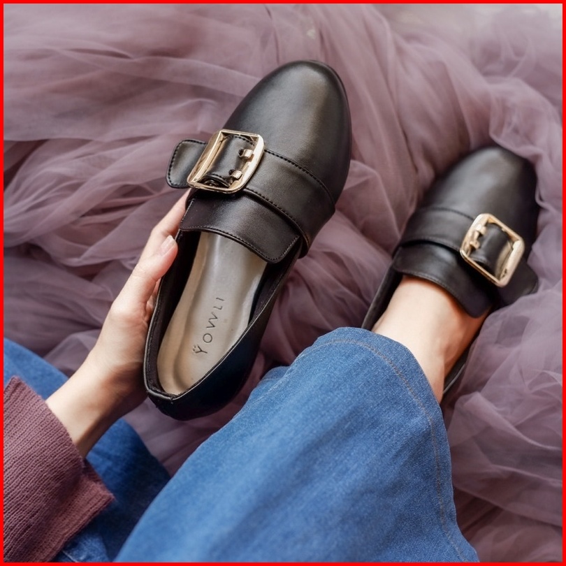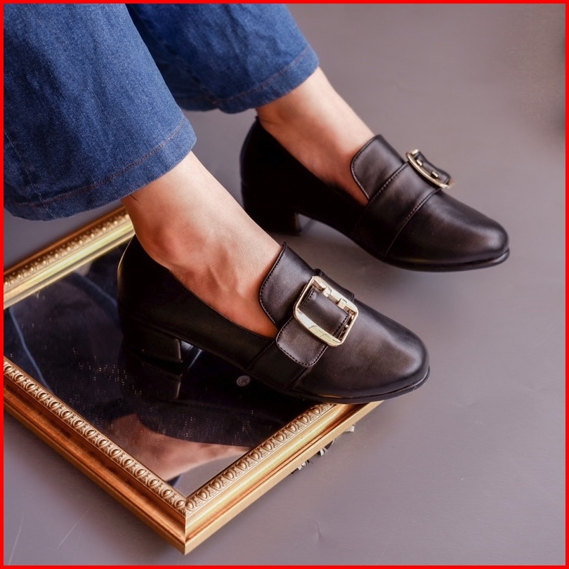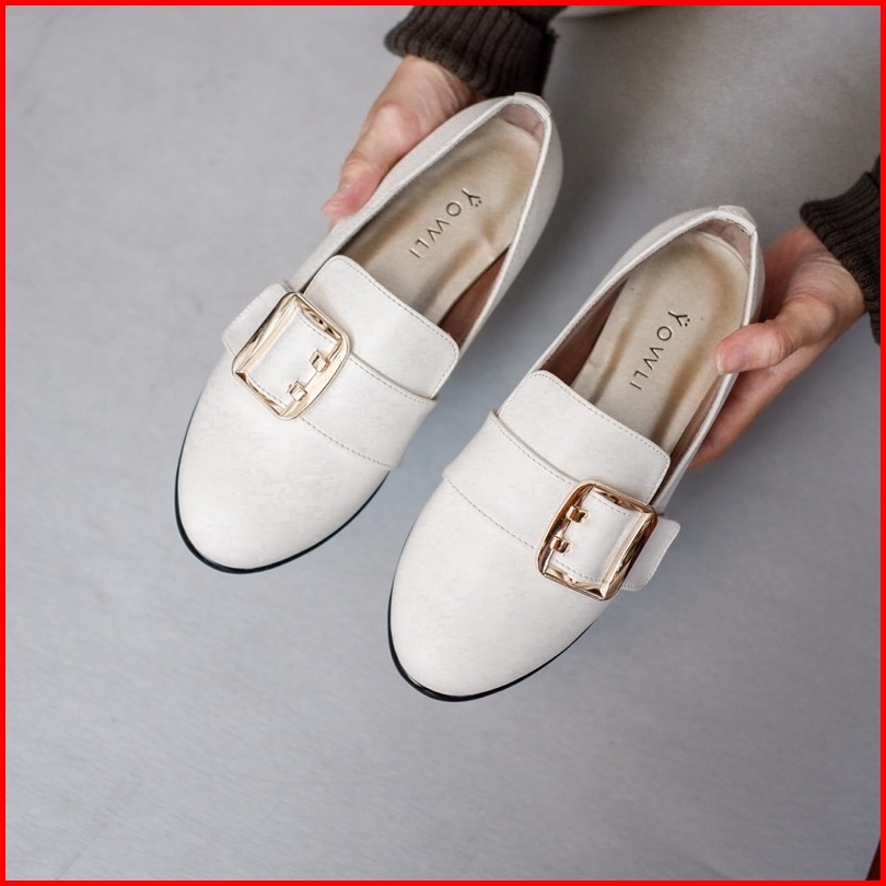 Yovvli Sierra Flat Shoes Kulit Sepatu Wanita Kerja Kuliah Hak 3 Cm