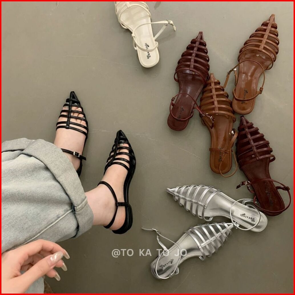 Sandal Wanita Hak 3cm Tali Premium Keronjo Ujung Lancip Fashion Wanita