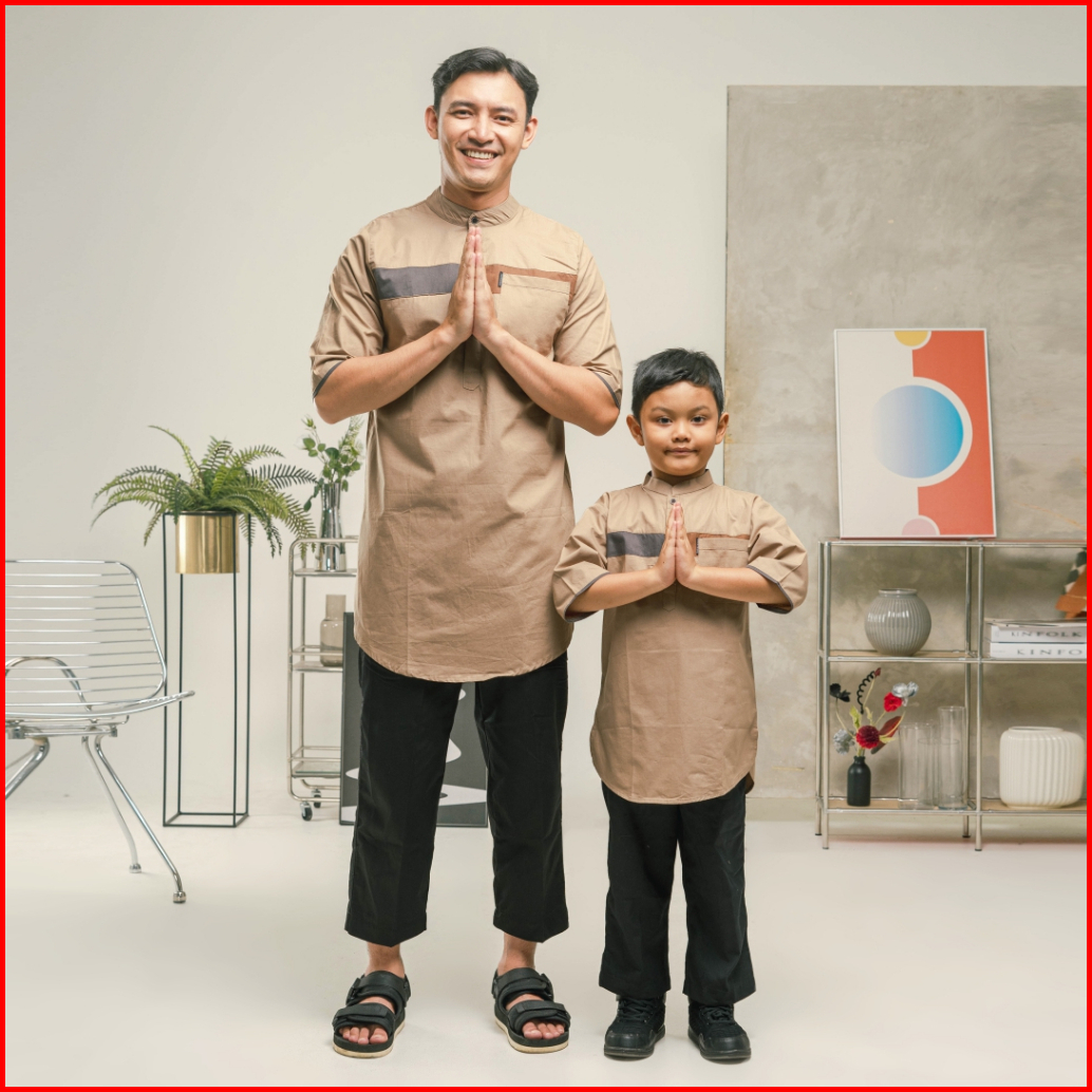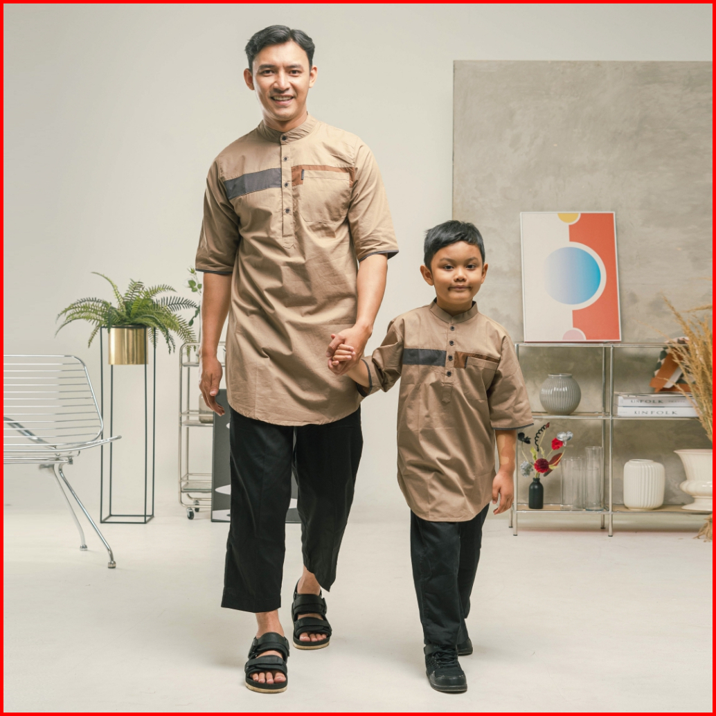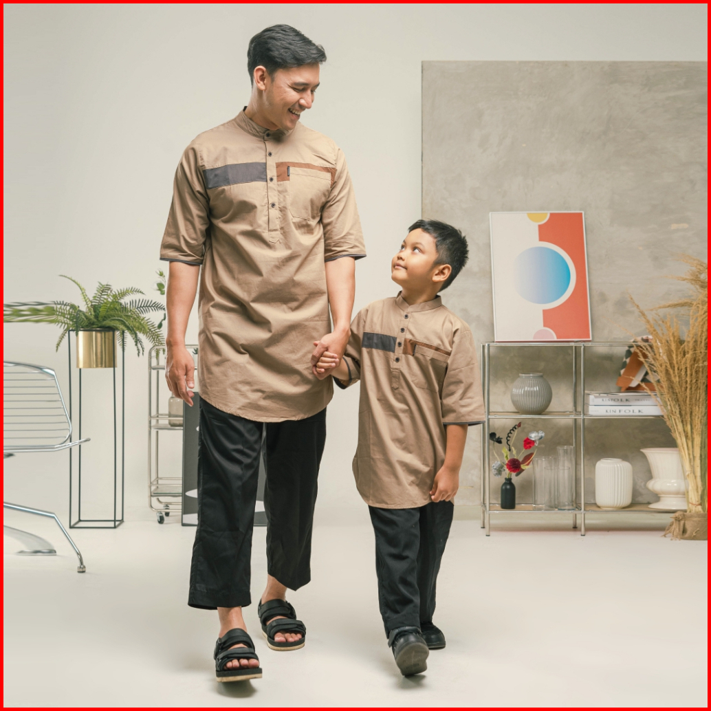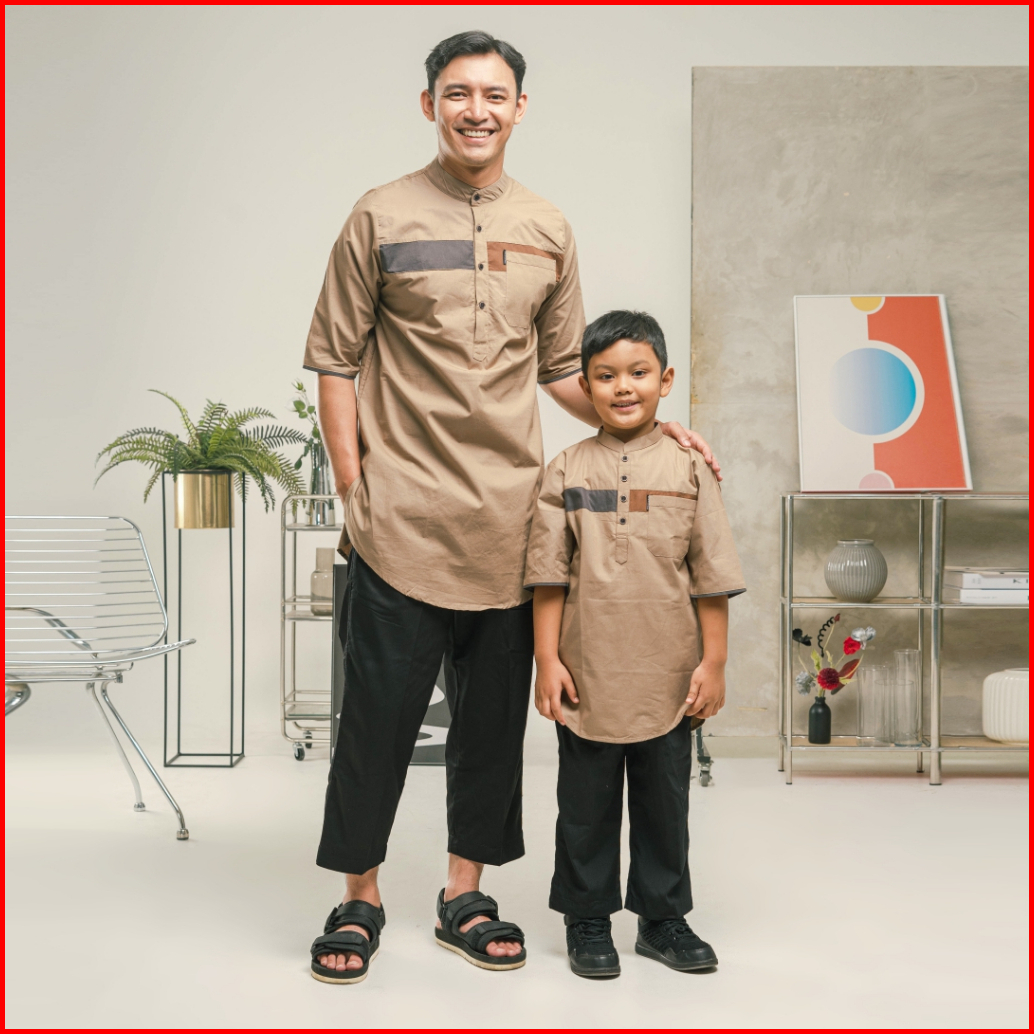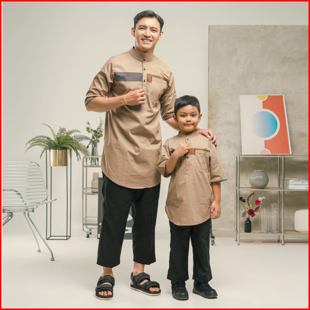 Khoirummah Koko Kurta Ammar Couple Baju Koko Pria Kurta Ayah Dan Anak Koko Kurta Lengan 3 4 Cream