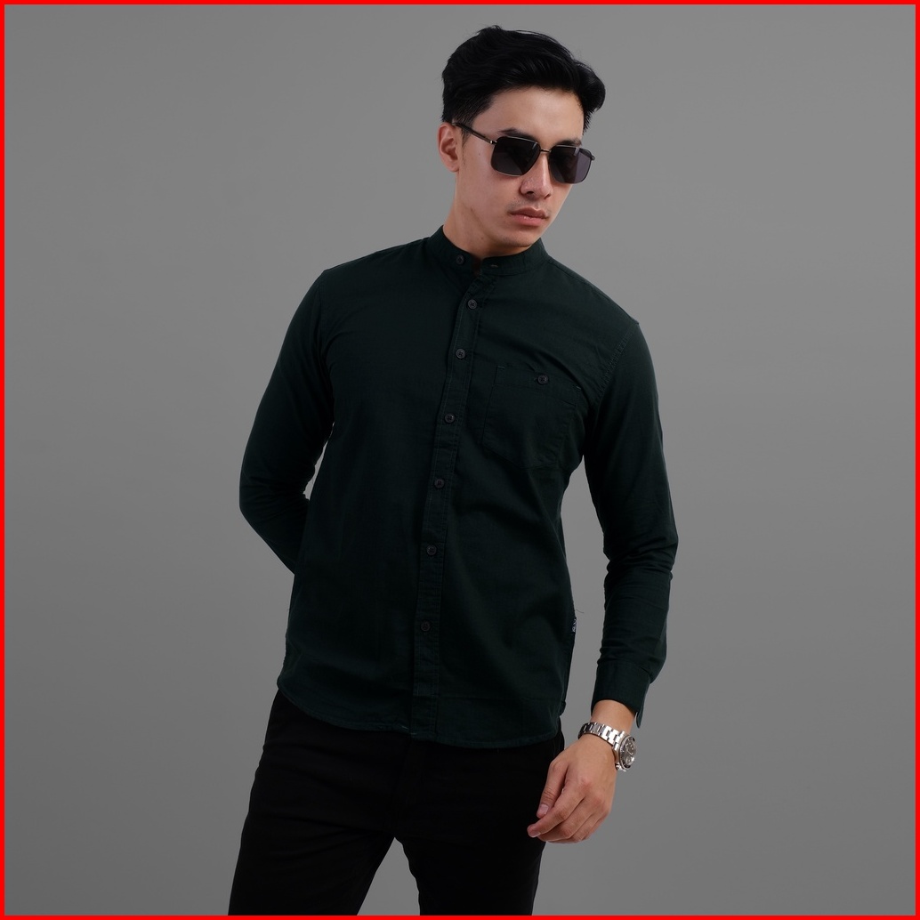 Dgm Kemeja Polos Pria Lengan Panjang Kerah Sanghai Dark Green 1414