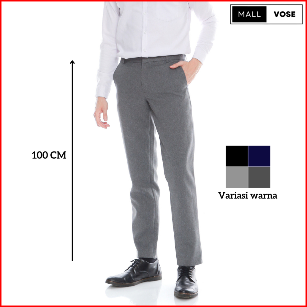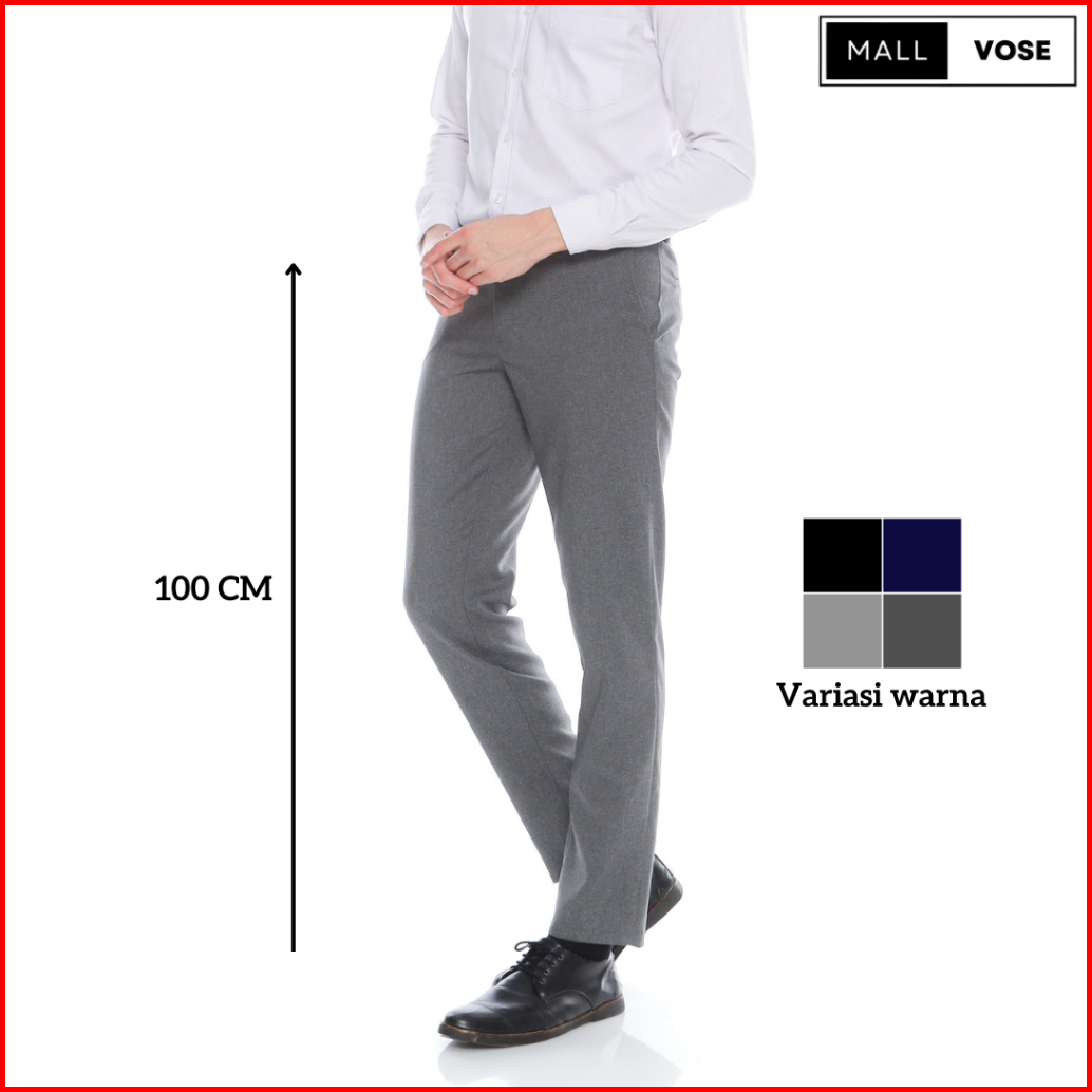 Mallvose - Celana Formal Kerja Abu Muda Bahan Semi Woll Premium Panjang 100cm
