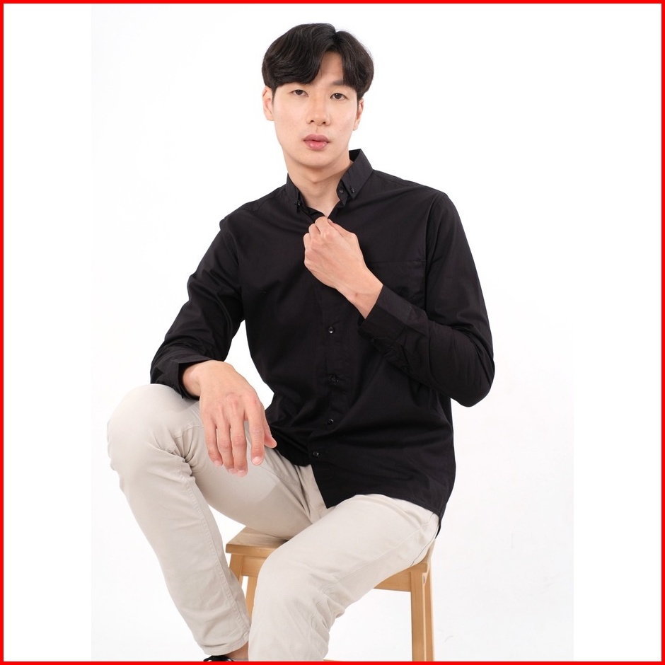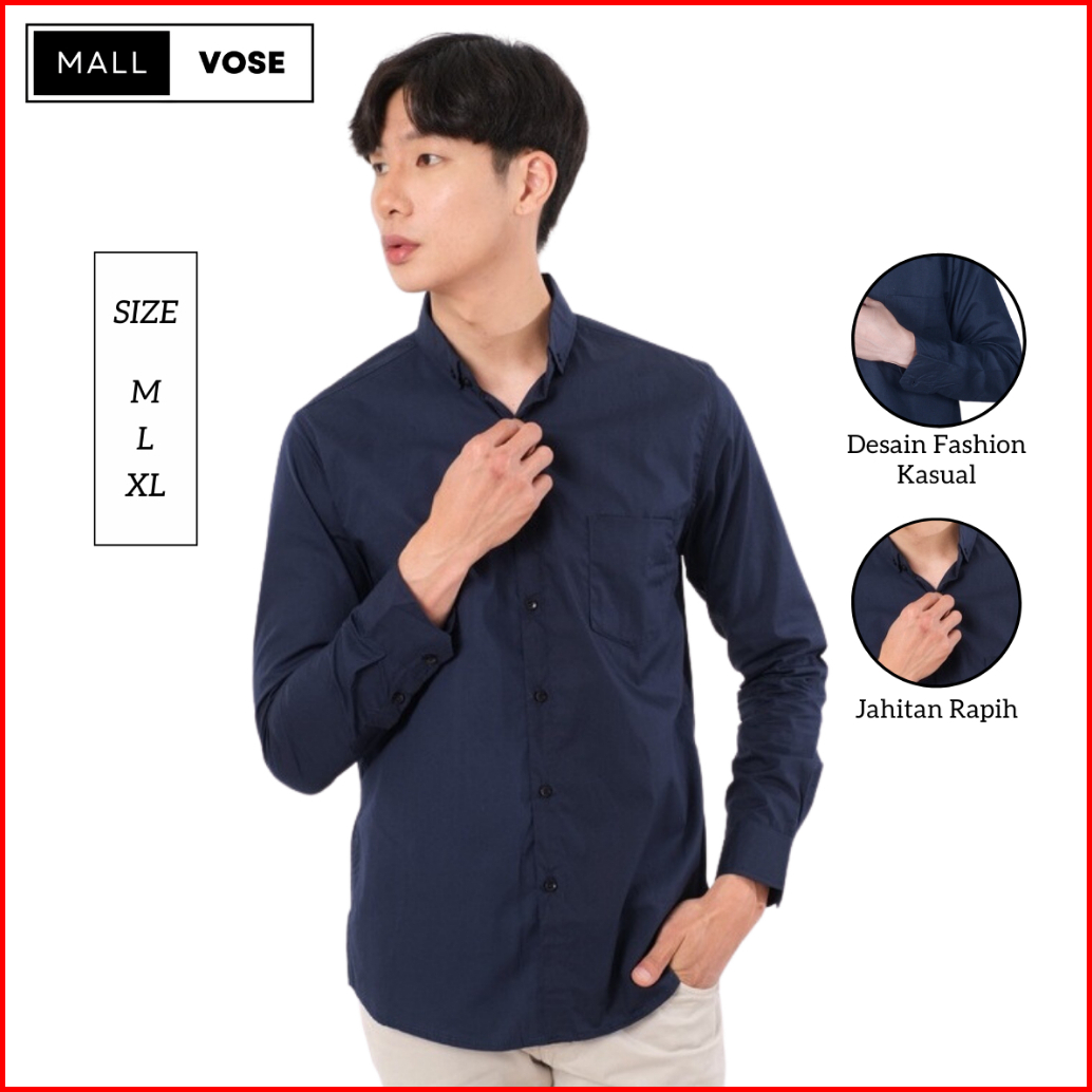 Mallvose - Kemeja Polos Lengan Panjang Pria Polos