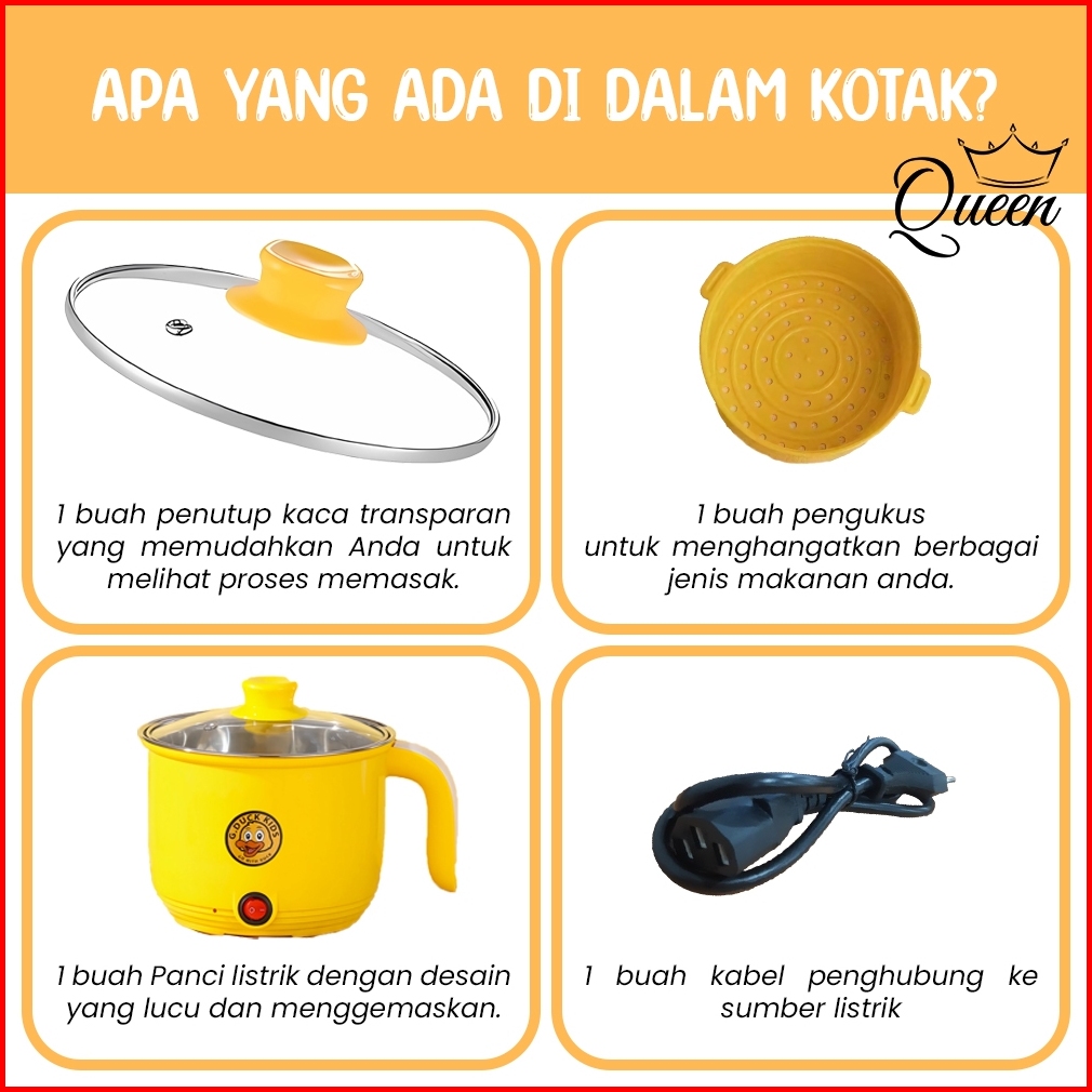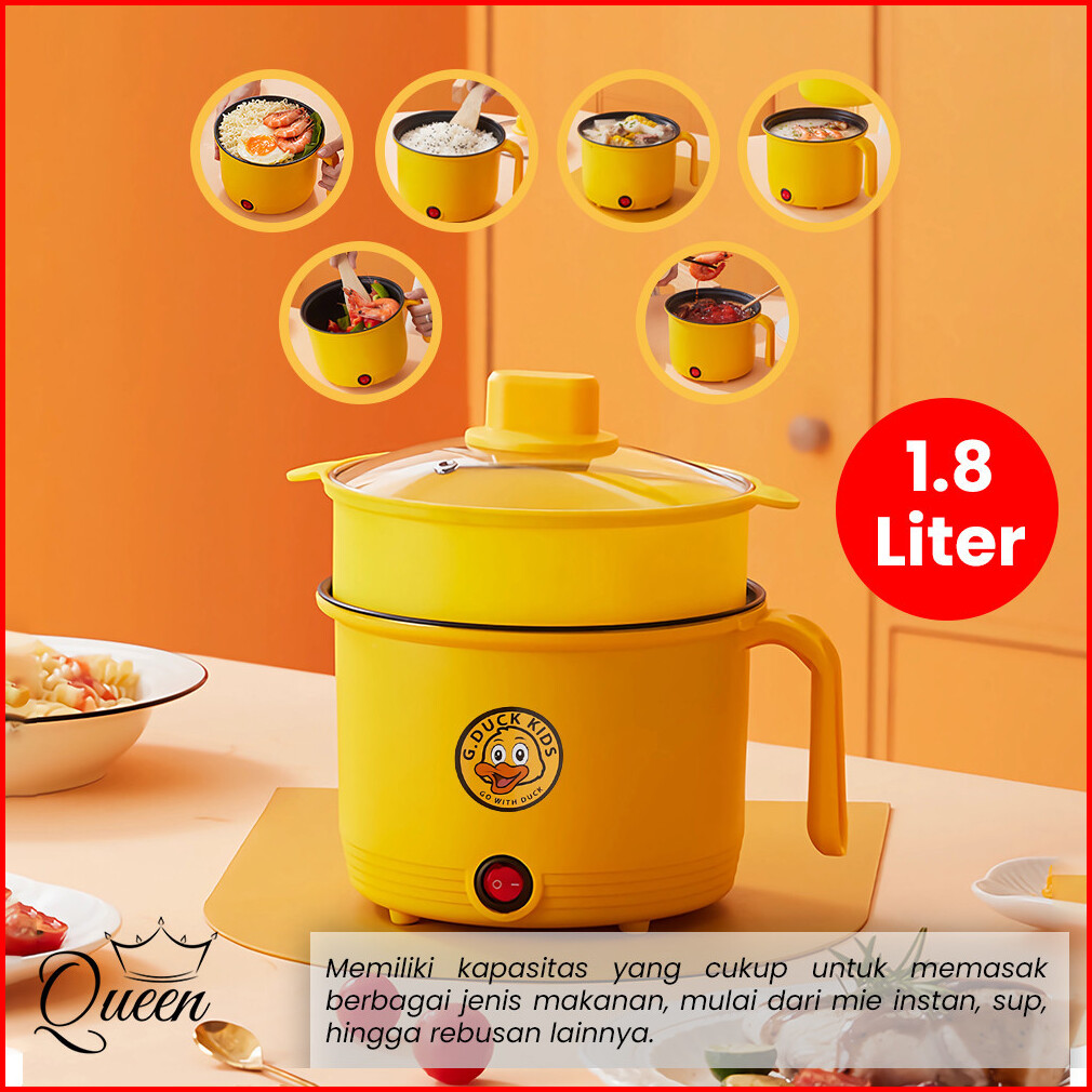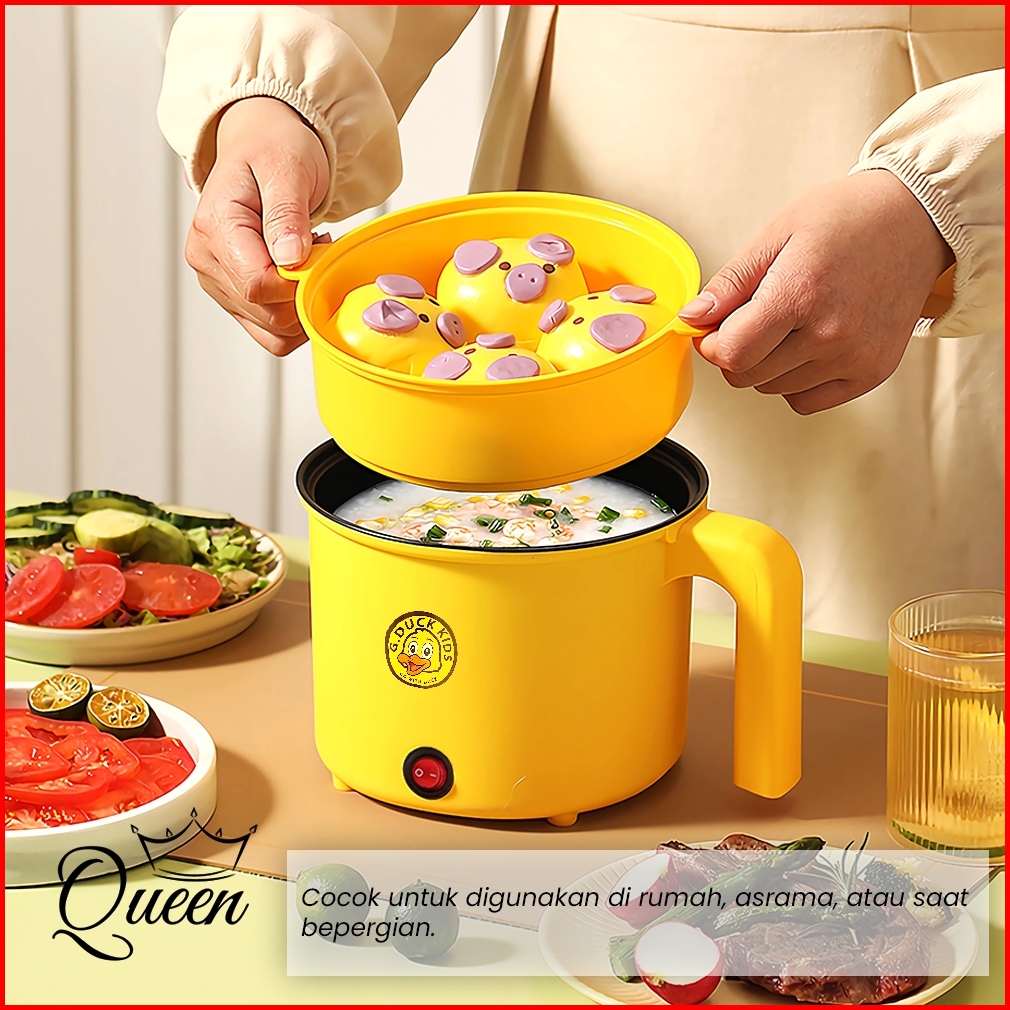 Qg Panci Listrik Multifungsi 1.8l Dengan Kukusan Rice Cooker Mini 18cm Motif Bebek Lucu