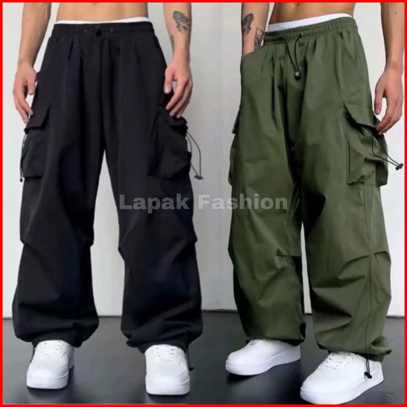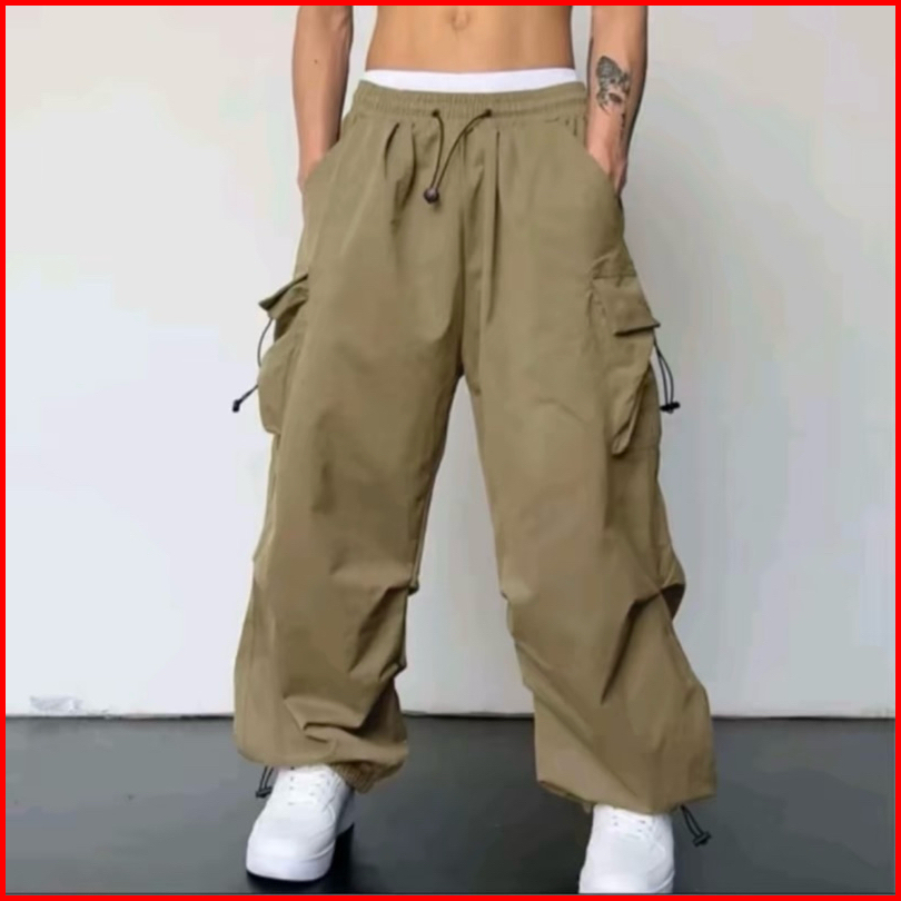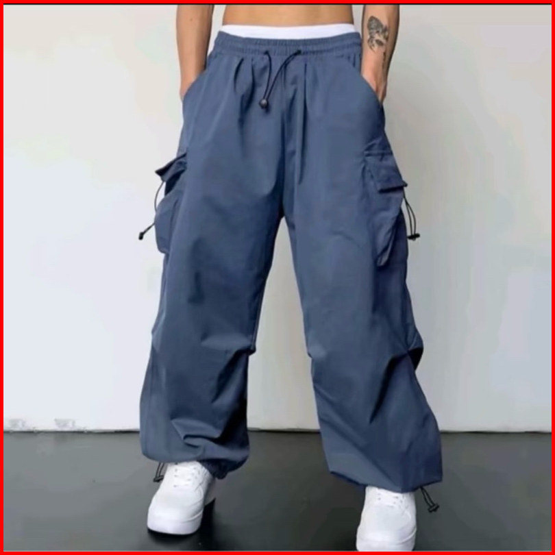 Celana Cargo Pria Panjang Model Terbaru Highwaist Korean Style Casual Tali Serut Pinggang Karet