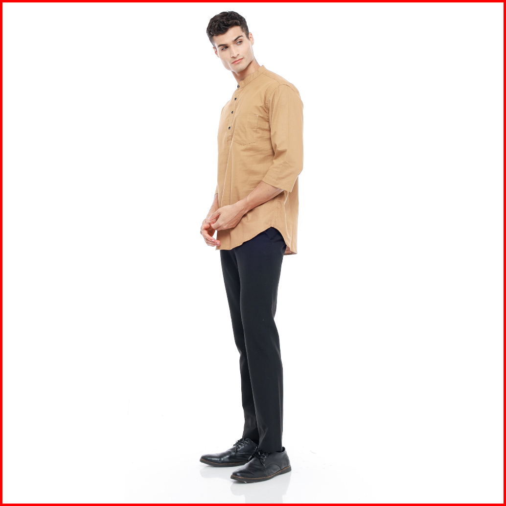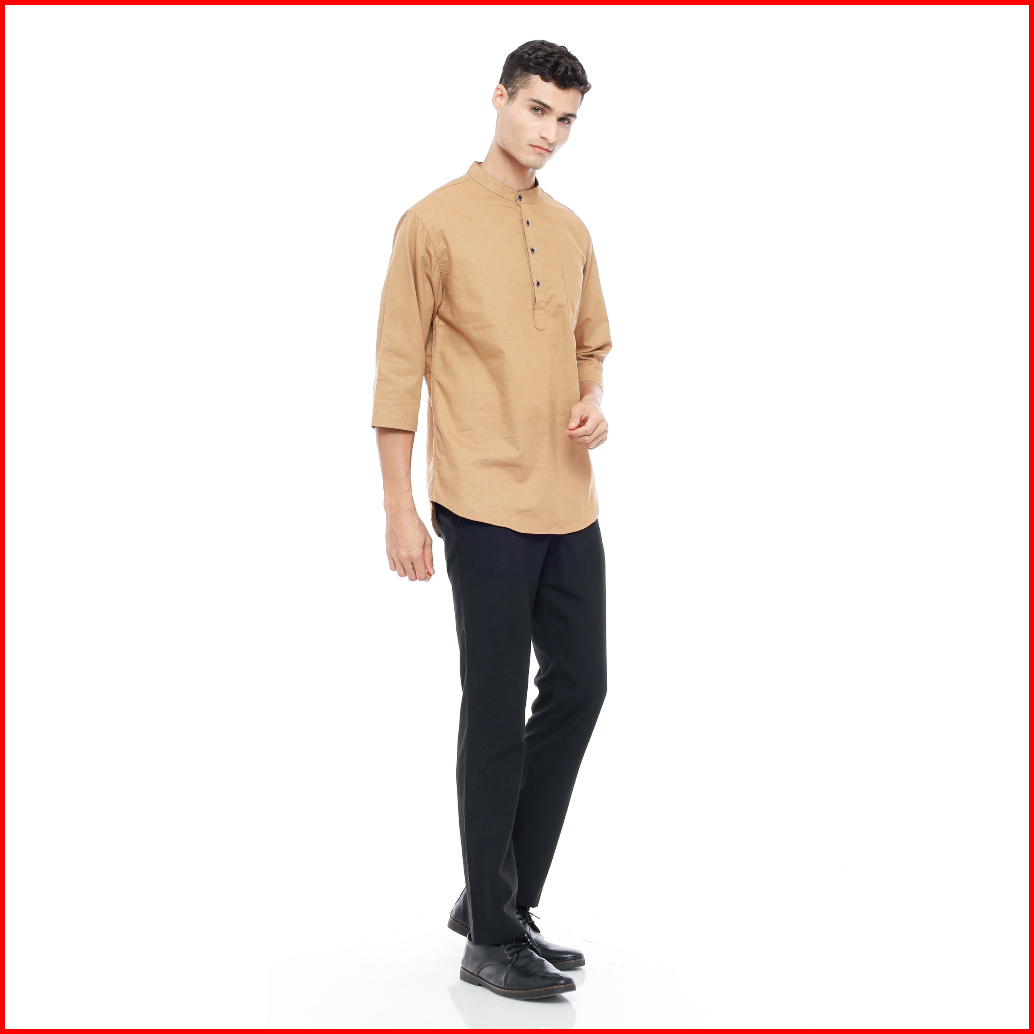 Mallvose - Koko Kemeja Pria Kurta Lengan 3 4 Baju Muslim Mv03 Brown