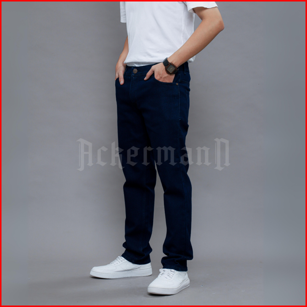 Ackermann By Mallvose - Celana Jeans Denim Pria Panjang Polos Slimfit Blue Metal Premium