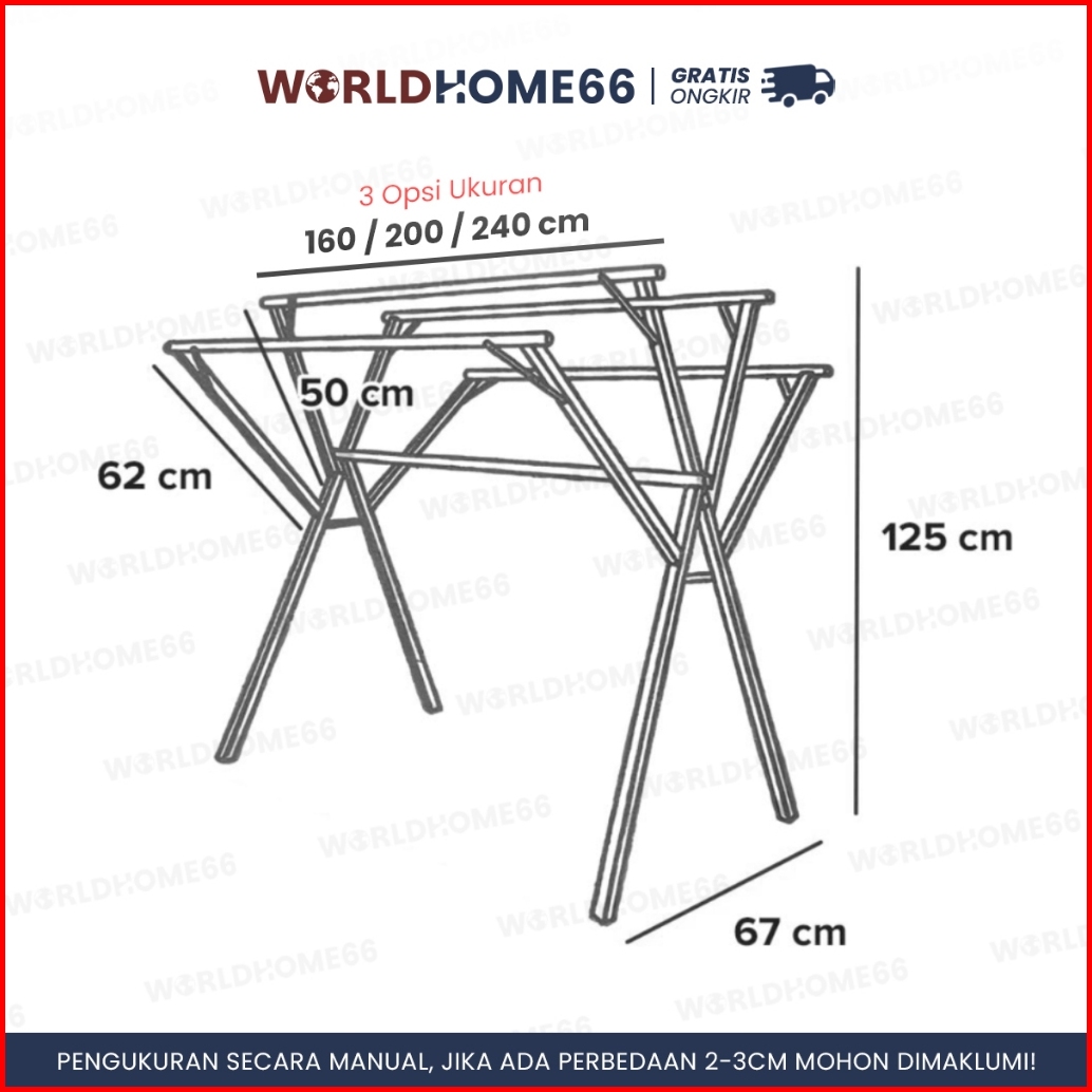 Worldhome Jemuran Lipat Jumbo Jemuran Pakaian Portable 5 Tiang Gantungan Baju Outdoor Besi Kokoh