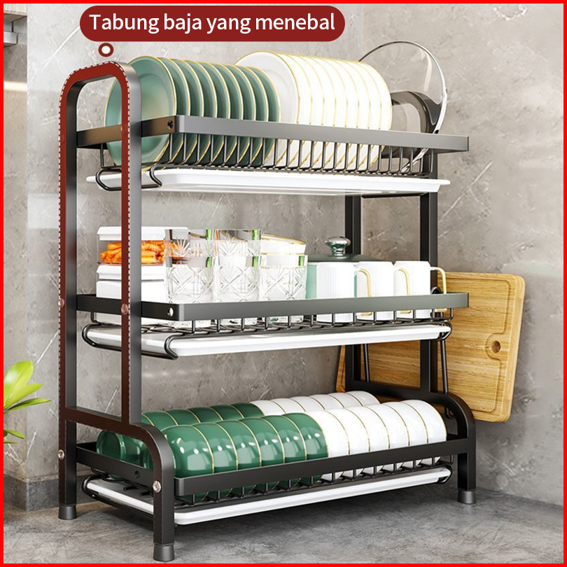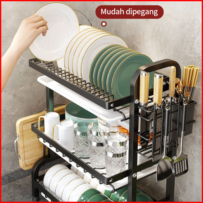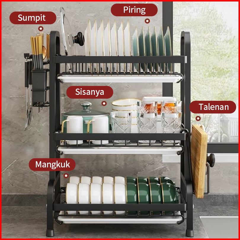 Rak Piring Rak Dapur Rak Cuci Piring Rak Penyimpanan Dapur Rak Pengering Piring Rak Mangkuk Piring Dengan Aksesoris