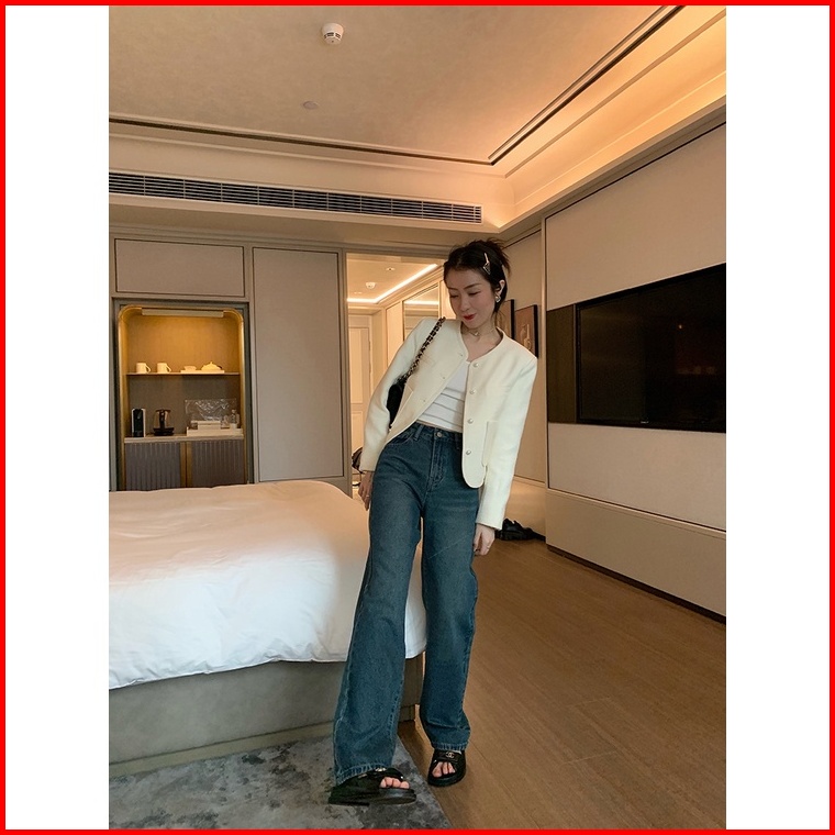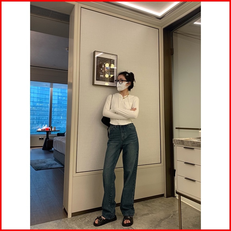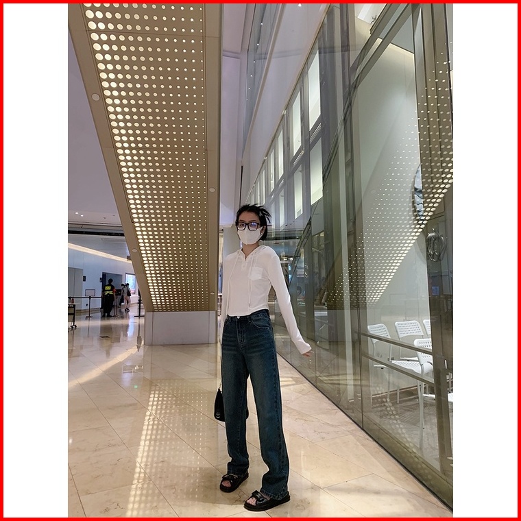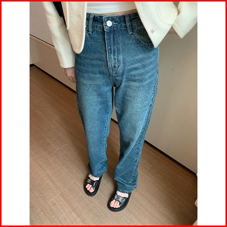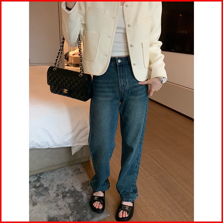 Highwaist Kulot Jeans Wanita Loose Biru Retro Celana Jeans Panjang Wanita