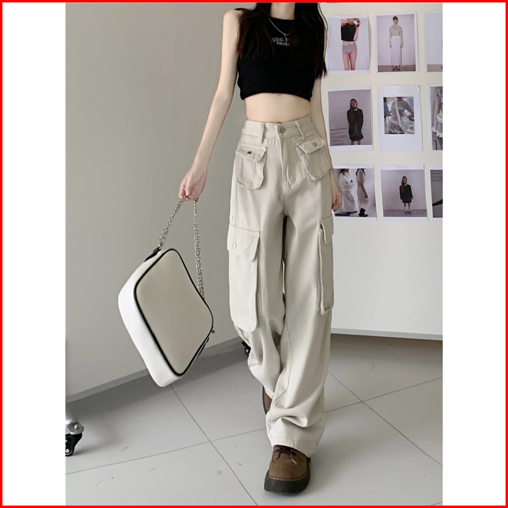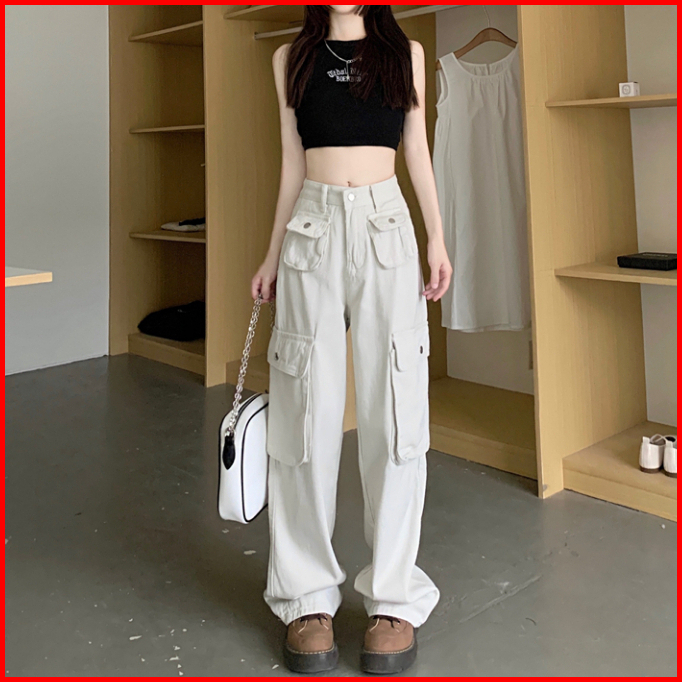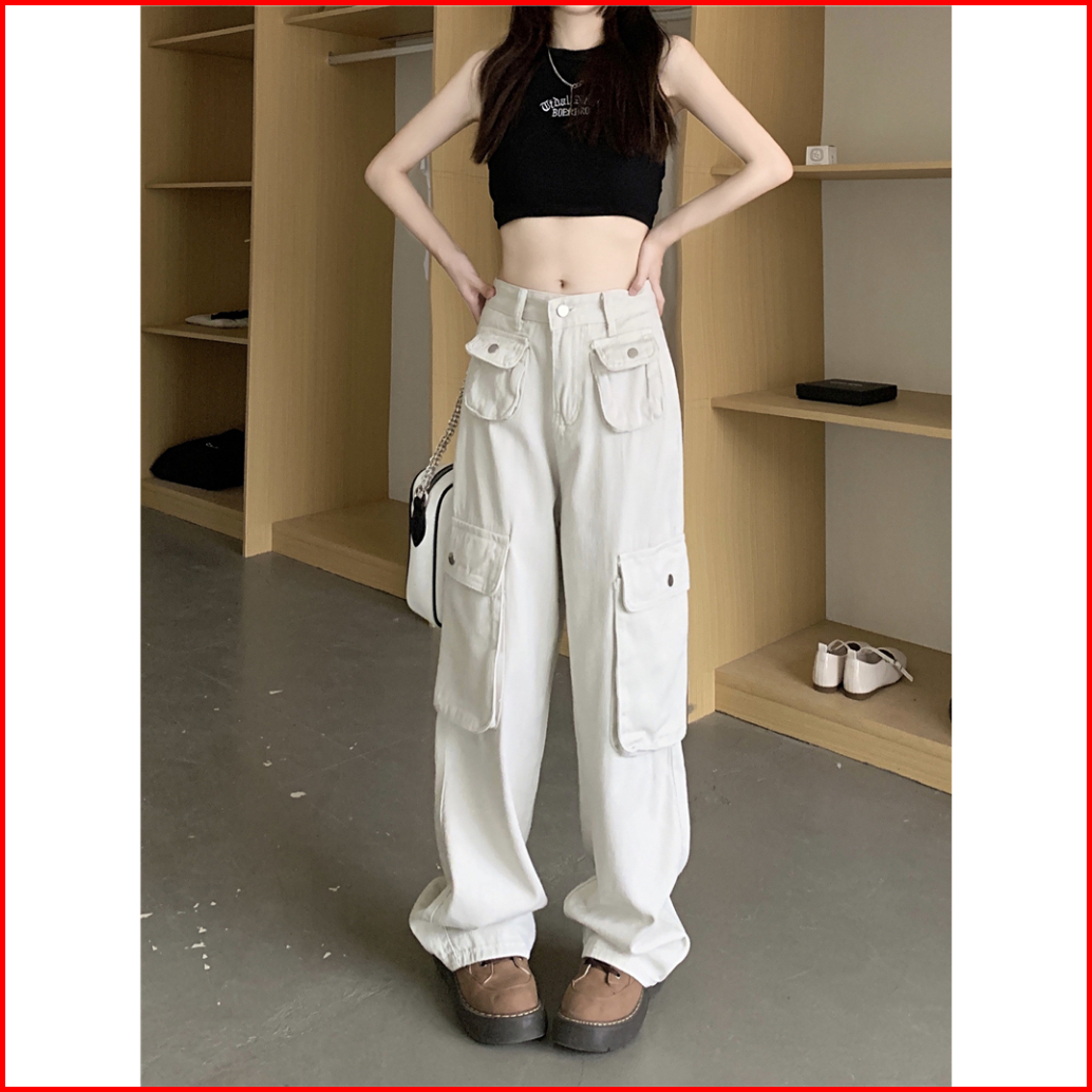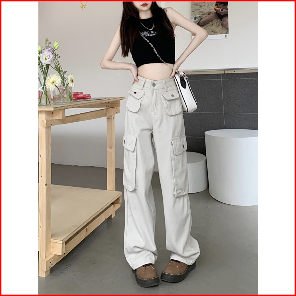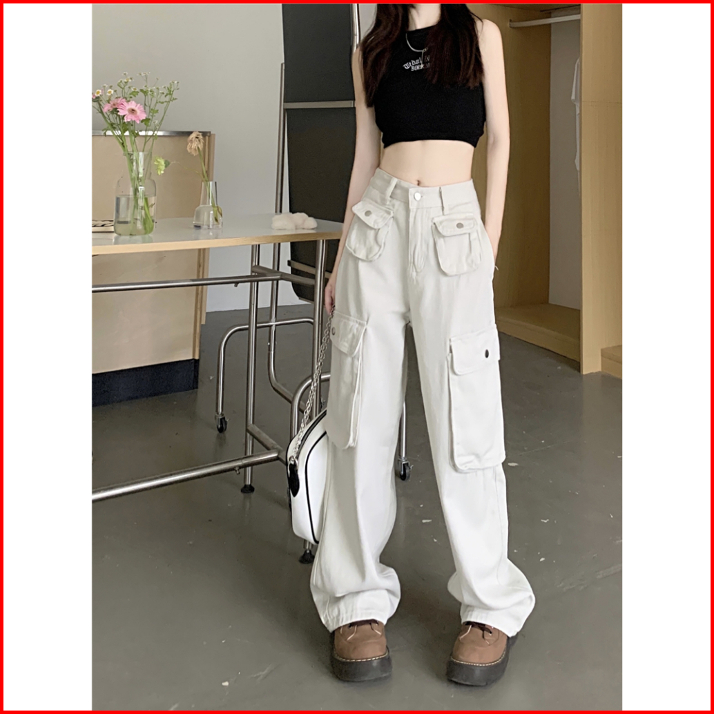 Cargo Jeans Wanita Highwaist Korea Style Putih